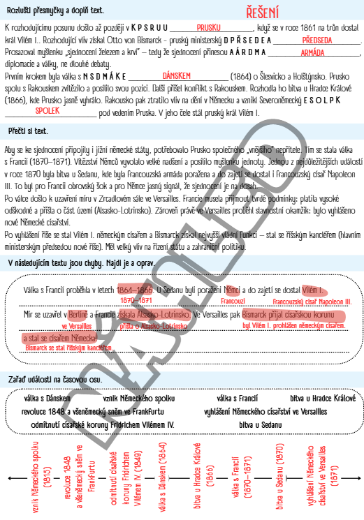 Sjednocení Německa - pracovní listy