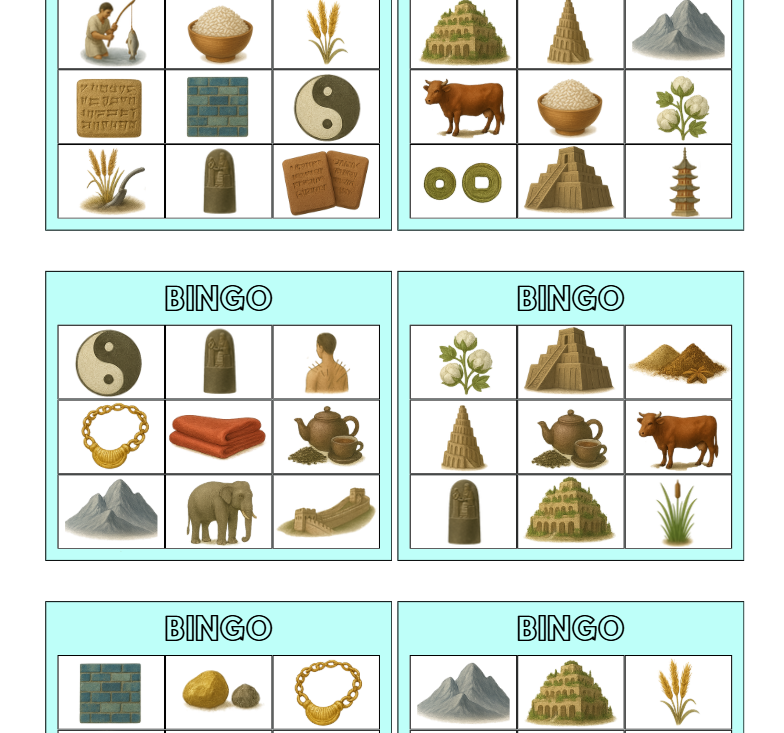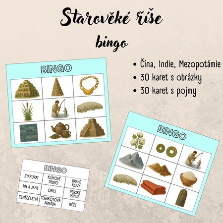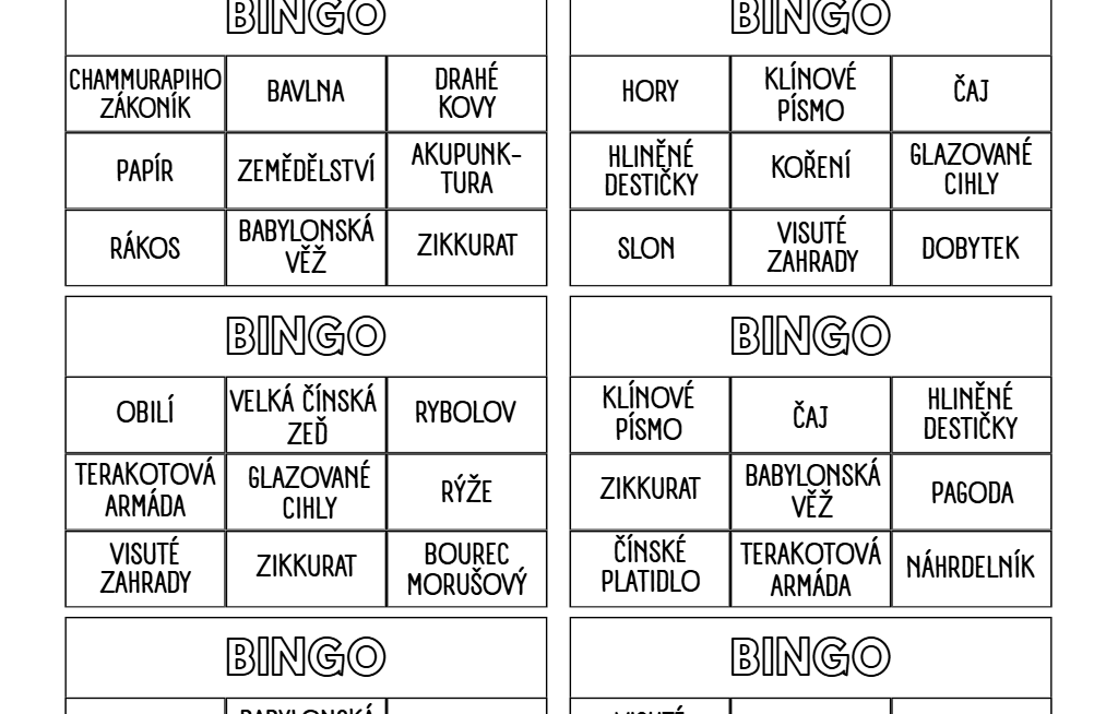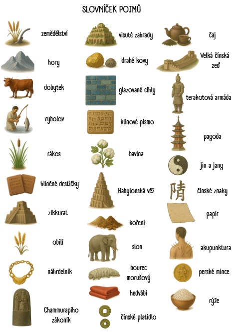 Zábavná hra na zopakování pojmů na téma starověká Čína, Indie a Mezopotámie.