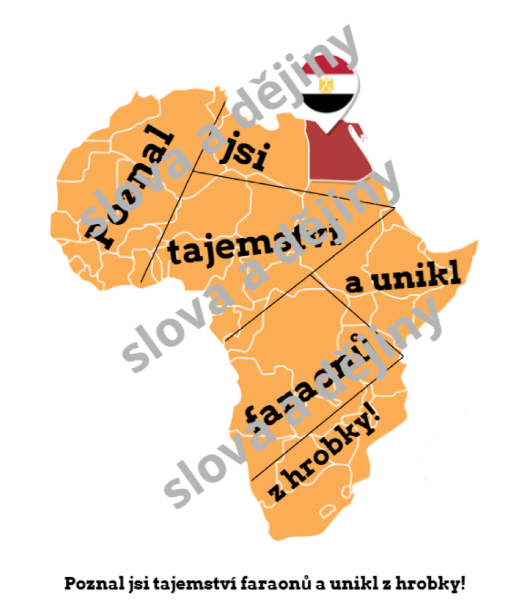 - Cíl: Po vyřešení všech 6 úkolů žáci složí mapu Afriky a přečtením zadní strany získají heslo pro otevření hrobky.