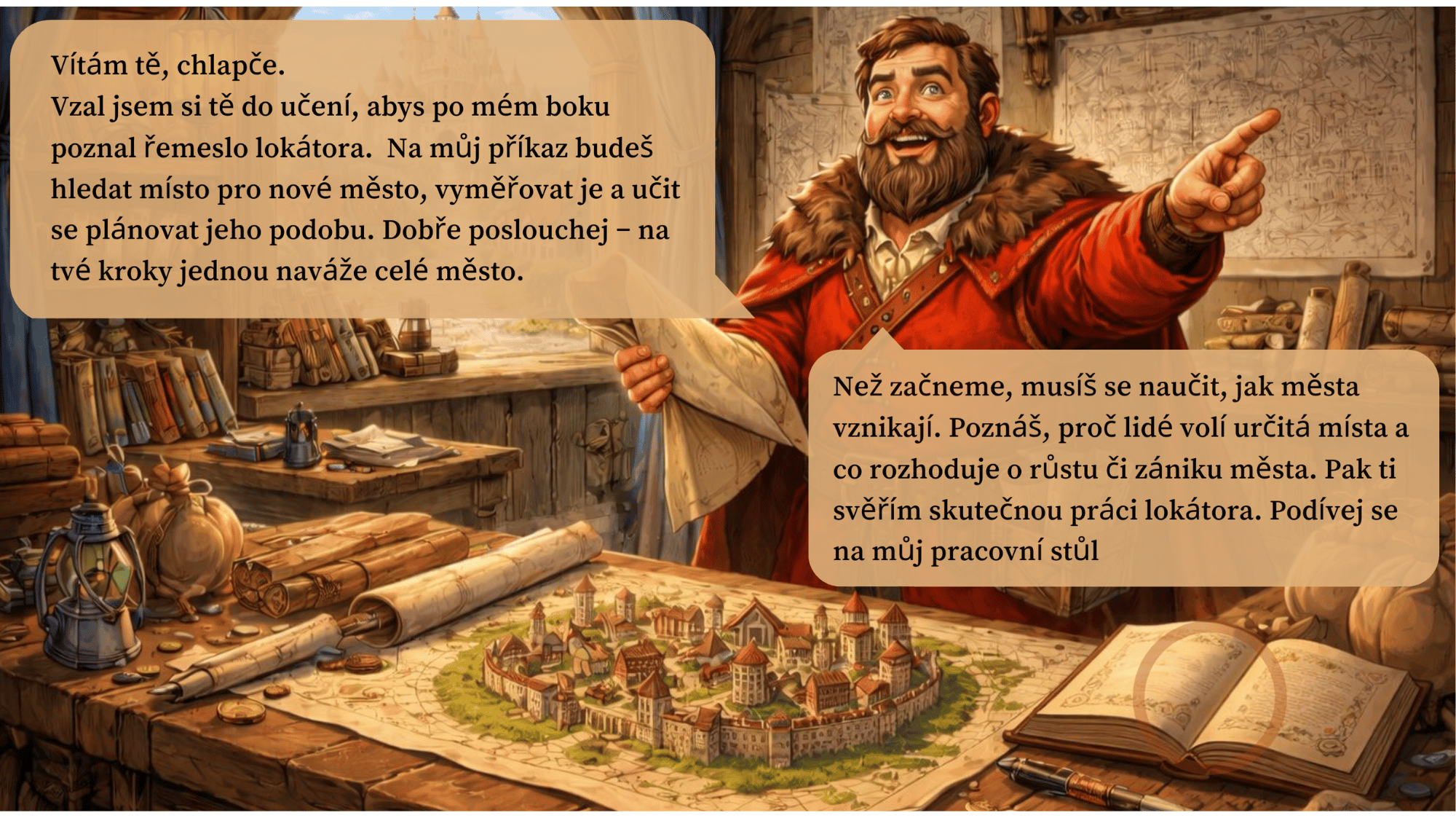 V této komplexní výukové jednotce žáci opouštějí roli pasivních posluchačů a stávají se aktivními hybateli dějin. Prostřednictvím interaktivní simulace v prostředí Genially si na vlastní kůži vyzkouší odpovědnost člověka, který dostal za úkol vybudovat prosperující středověké město.