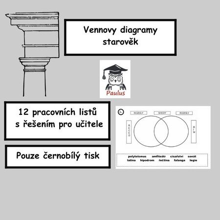 Materiál obsahuje 12 diagramů a řešení pro učitele. Každý diagram obsahuje 3 kruhy, přičemž do dvou kruhů napíšete rozdíly a do jednoho shody k danému tématu. Vennovy diagramy učí děti ujasnit si myšlenky k danému tématu. Jde o porovnání kontrastu a shody.