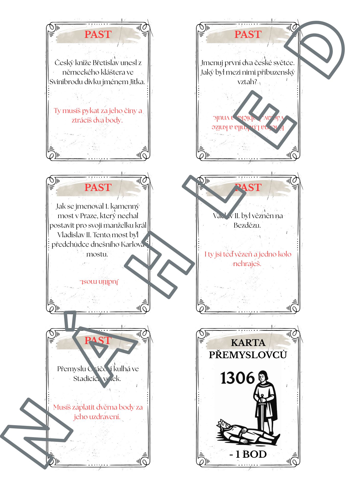 - Karty PAST (15) přinesou hráči trest, nebo otevřenou otázku, na níž musí odpovědět.