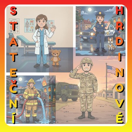 - 4 velké postavy hrdinů: Každá profese má svou celostránkovou ilustraci s názvem, která slouží k motivaci a popisu (vzor: „Voják“, „Hasič“).