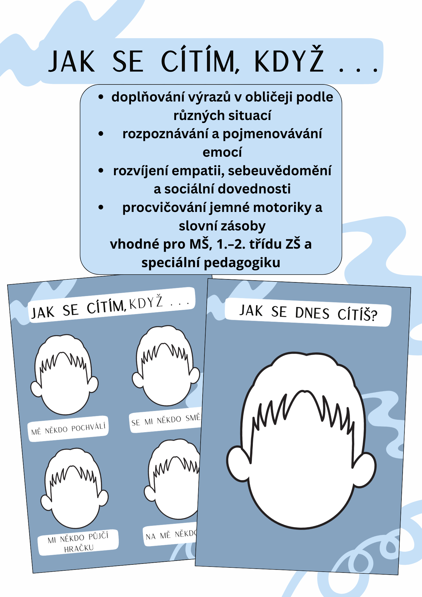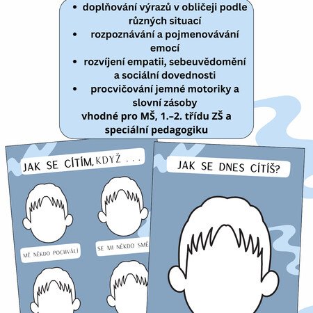 Tento materiál pomáhá dětem rozpoznávat a vyjadřovat své pocity v různých situacích. Děti doplňují výraz v obličeji podle toho, jak by se cítily, a při tom přemýšlejí o tom, jak jejich chování může působit na ostatní.