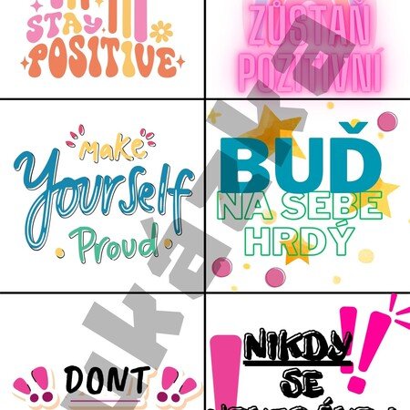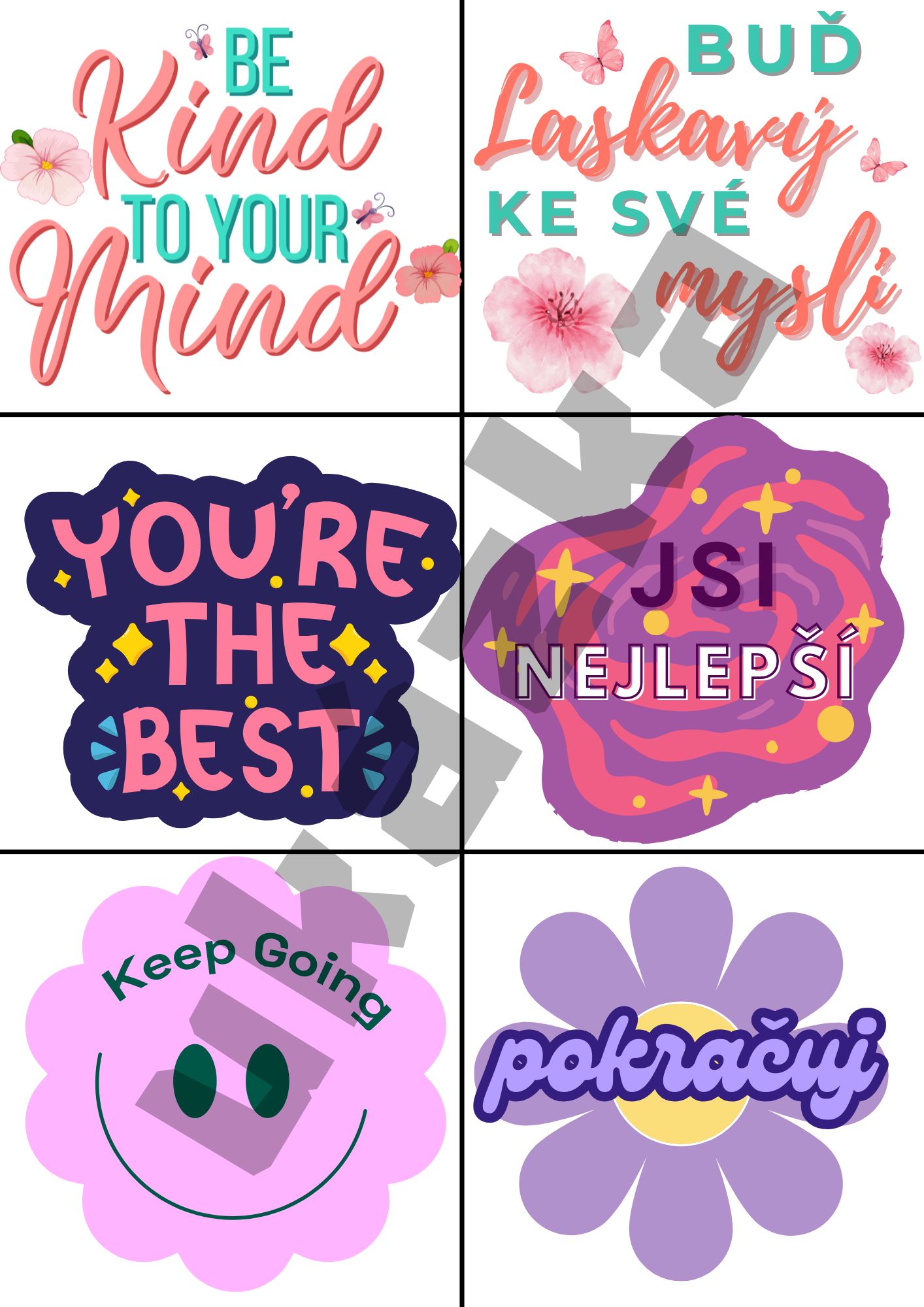 Kartičky vystřihněte, zalaminujte a vyvěste dětem na oči, nejlépe vedle zrcadla, aby si uvedená hesla připomněly když se na sebe budou koukat do zrcadla.