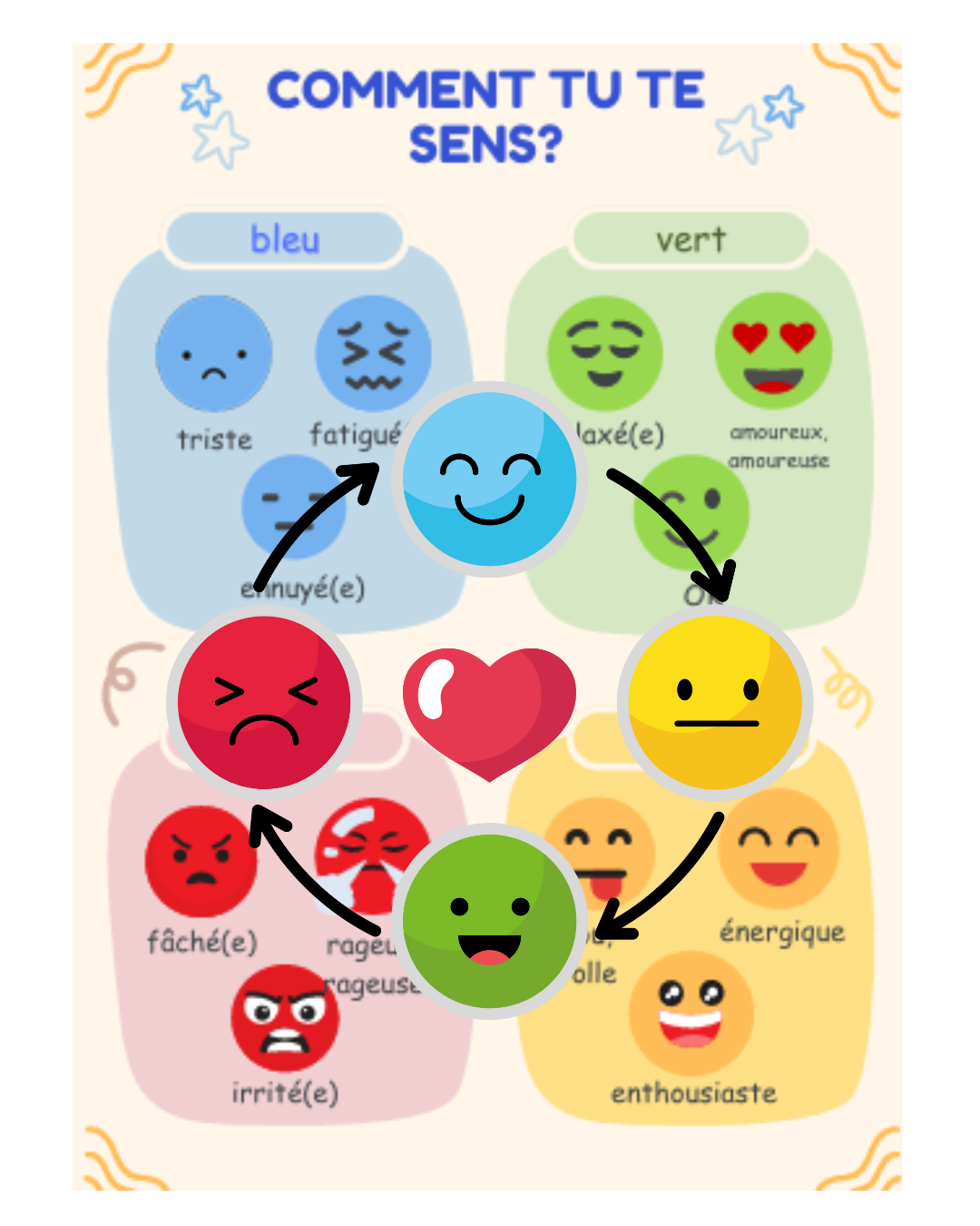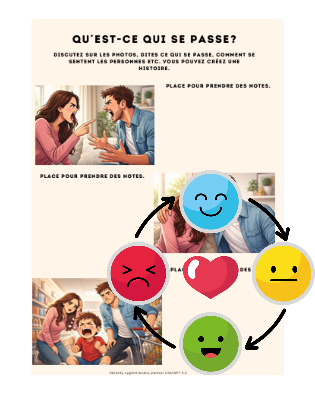 Materiál je určen pro výuku francouzštiny na úrovni A1/A2 a zaměřuje se na tematický okruh emoce, pocity a mezilidské chování. Cílem je rozvoj slovní zásoby, komunikačních dovedností a emoční gramotnosti žáků prostřednictvím vizuální opory a aktivního zapojení.