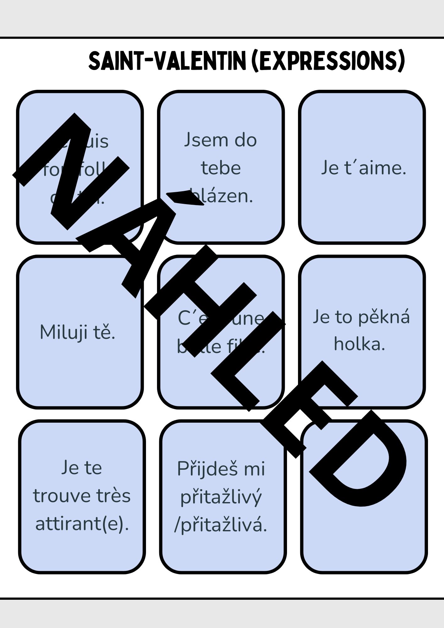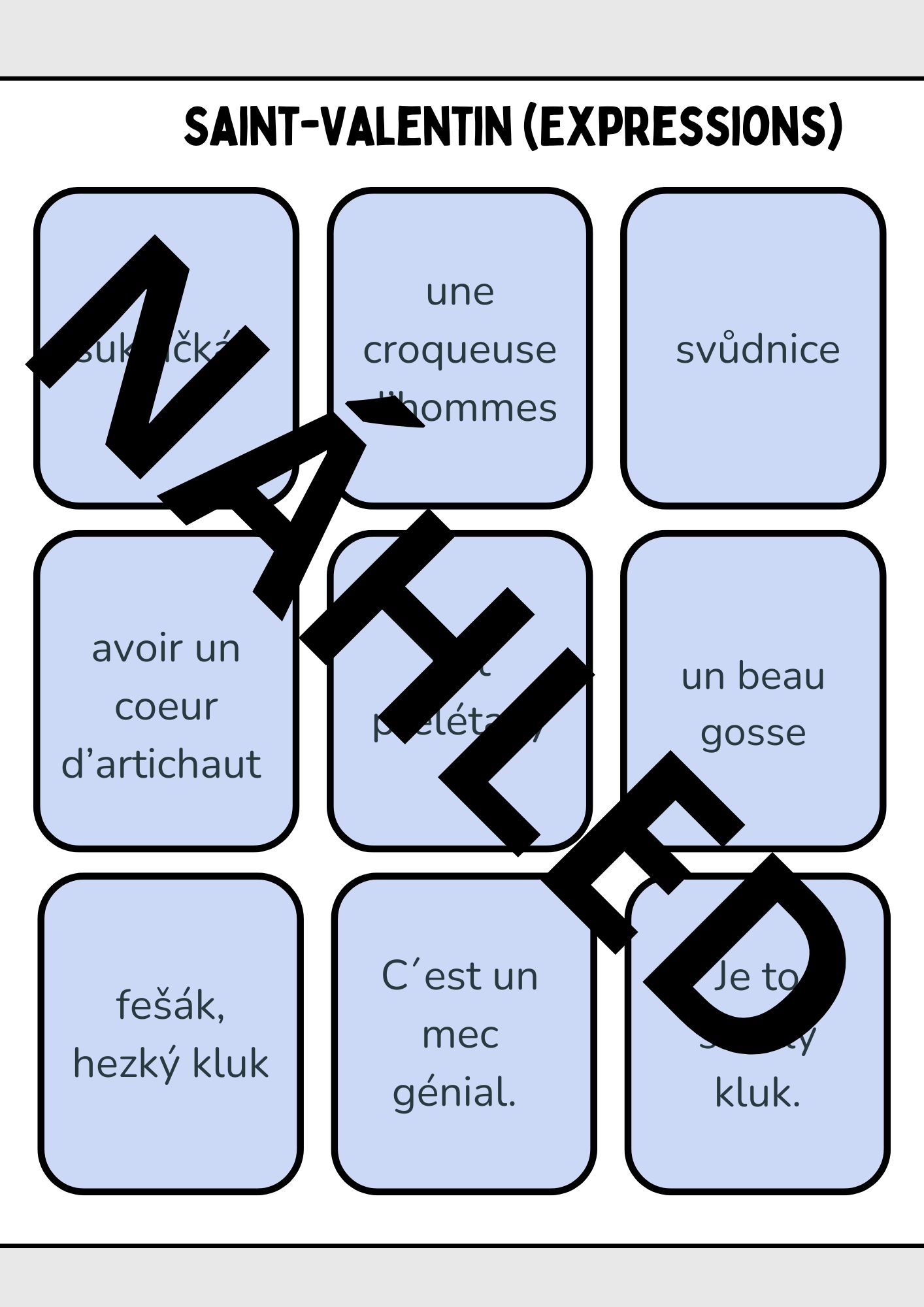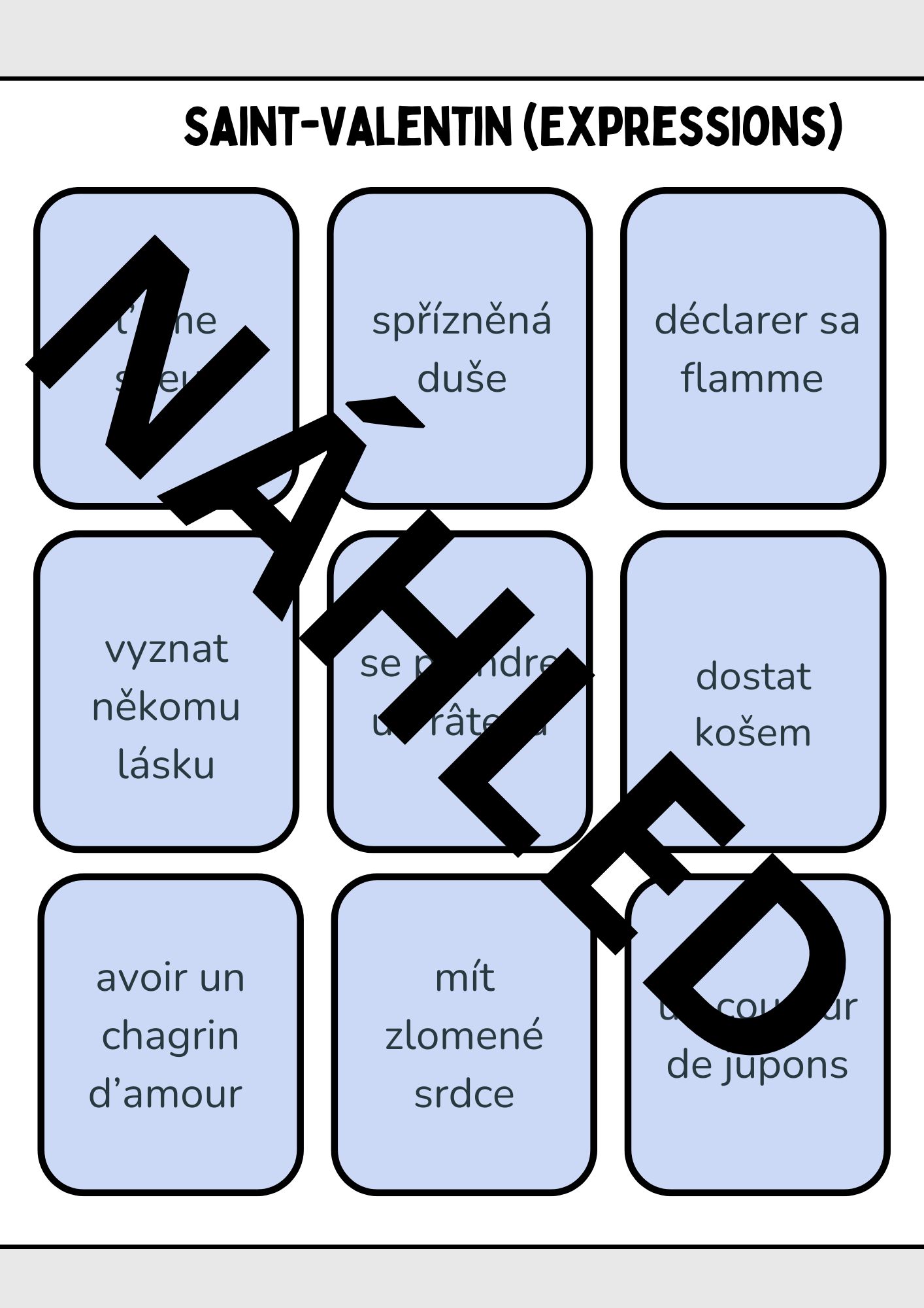 - česko-francouské kartičky vhodné pro pexeso obsahující idiomy, fráze a slovesa týkající se tohoto svátku