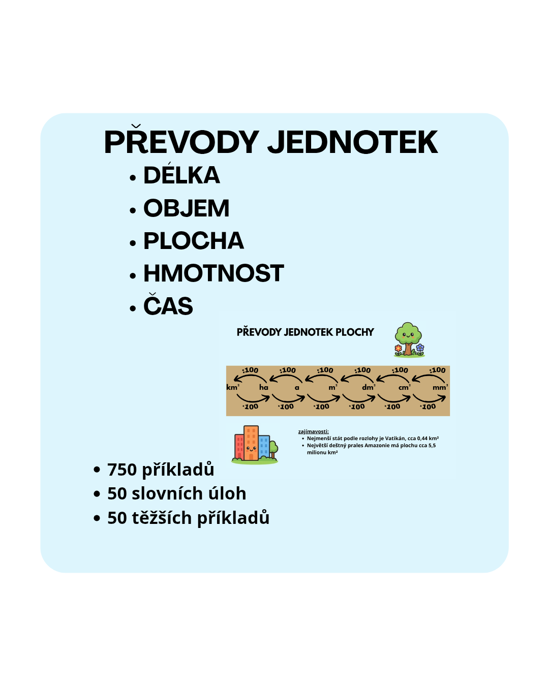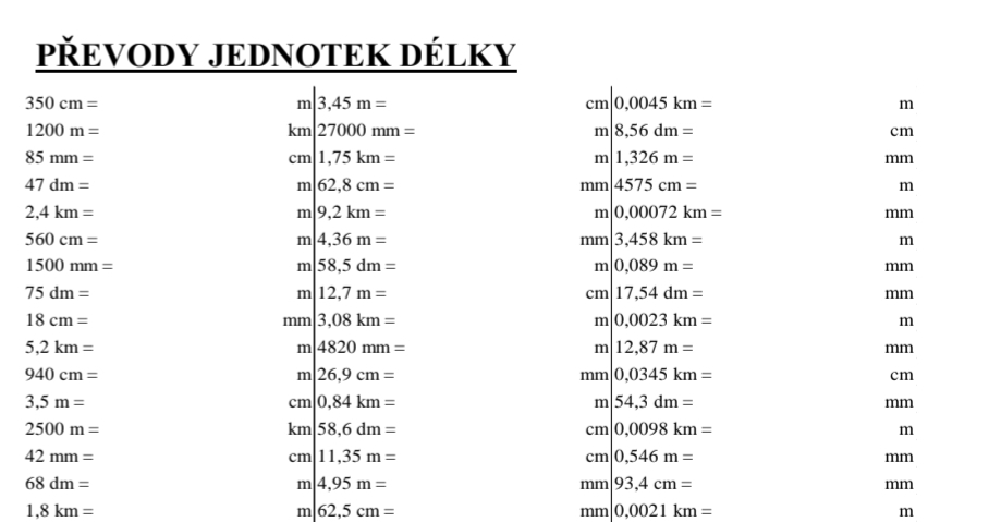 PŘEVODY JEDNOTEK - DÉLKY, PLOCHA, OBJEM, HMOTNOST, ČAS