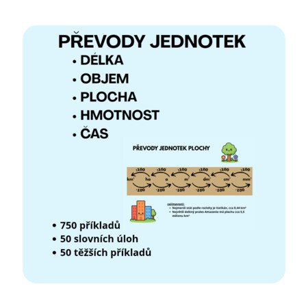 Pokud máte zájem o všechny převody jednotek, můžete zakoupit tento výhodný balíček všech převodů. Pokud nevyužijete všechny převody, můžete zakoupit jednotlivé materiály na převody na mém profilu. Pokud Vás zajímají pouze edukační pomůcky, na mém profilu je také najdete samostatně.