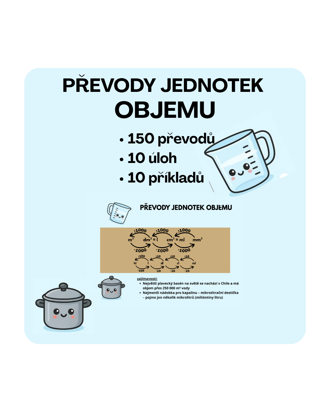 Pokud máte zájem o všechny převody jednotek, můžete zakoupit výhodný balíček všech převodů. Pokud využijete i ostatní převody, podívejte se na můj profil, kde vše najdete. Pokud Vás zajímají pouze edukační pomůcky, na mém profilu je také najdete samostatně.
