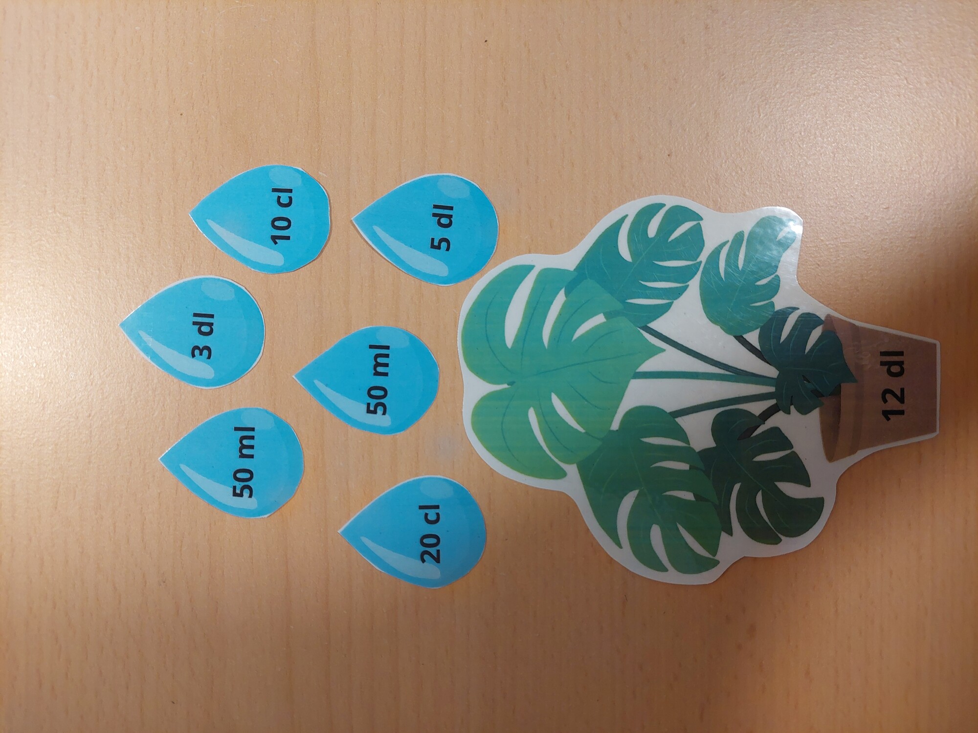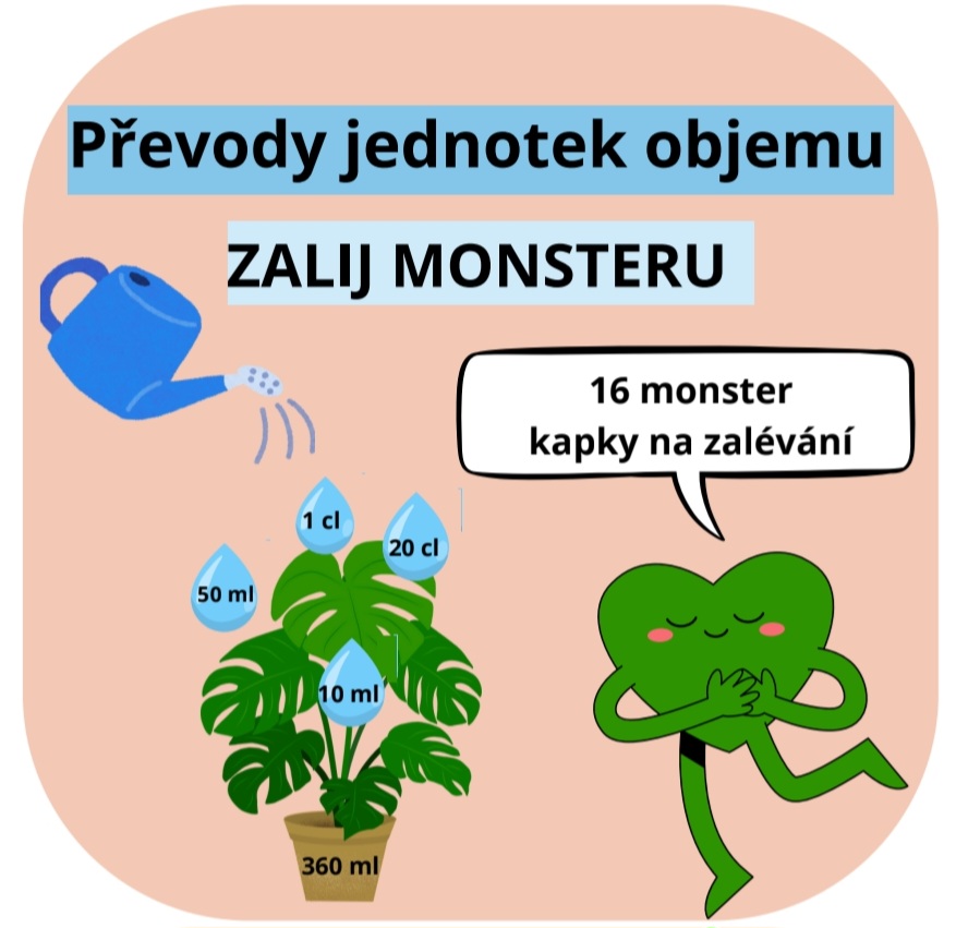 Žáci vybírají z kapek takové, které přesně odpovídají celkové hodnotě na květináči dané monstery.
