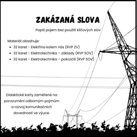Originální didaktická hra Zakázaná slova rozvíjí odbornou komunikaci a porozumění fyzice. Obsahuje 96 karet ve 3 úrovních obtížnosti (ZŠ i SŠ) v souladu s RVP. Ideální pro aktivizační opakování, procvičování pojmů a skupinovou práci.