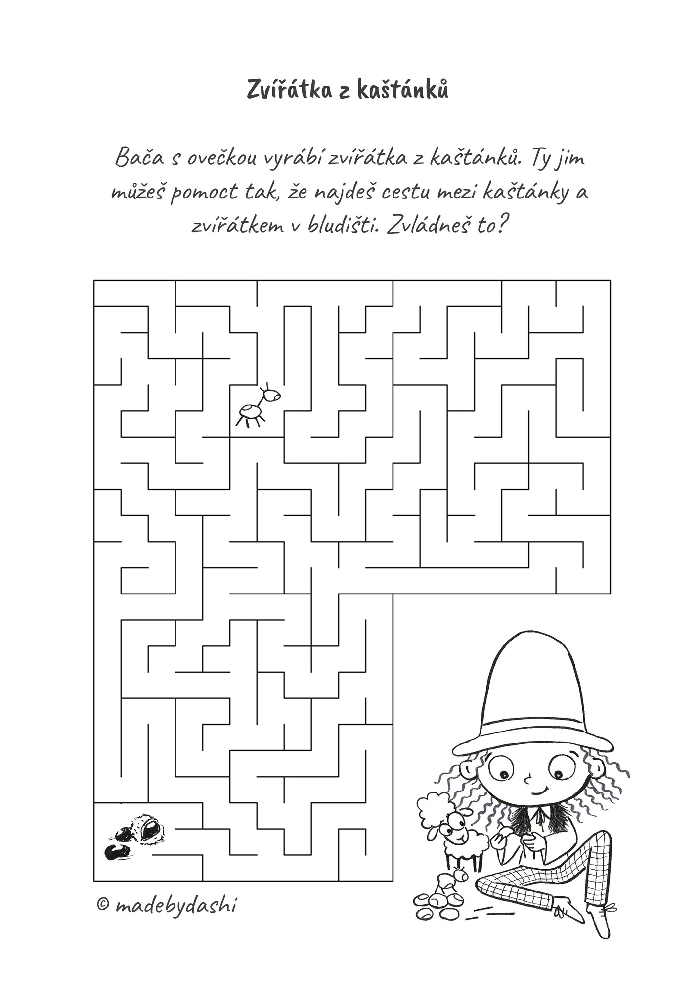 Vyzkoušejte s dětmi labyrint s malým ovčákem, jeho ovečkou a podzimní tematikou.