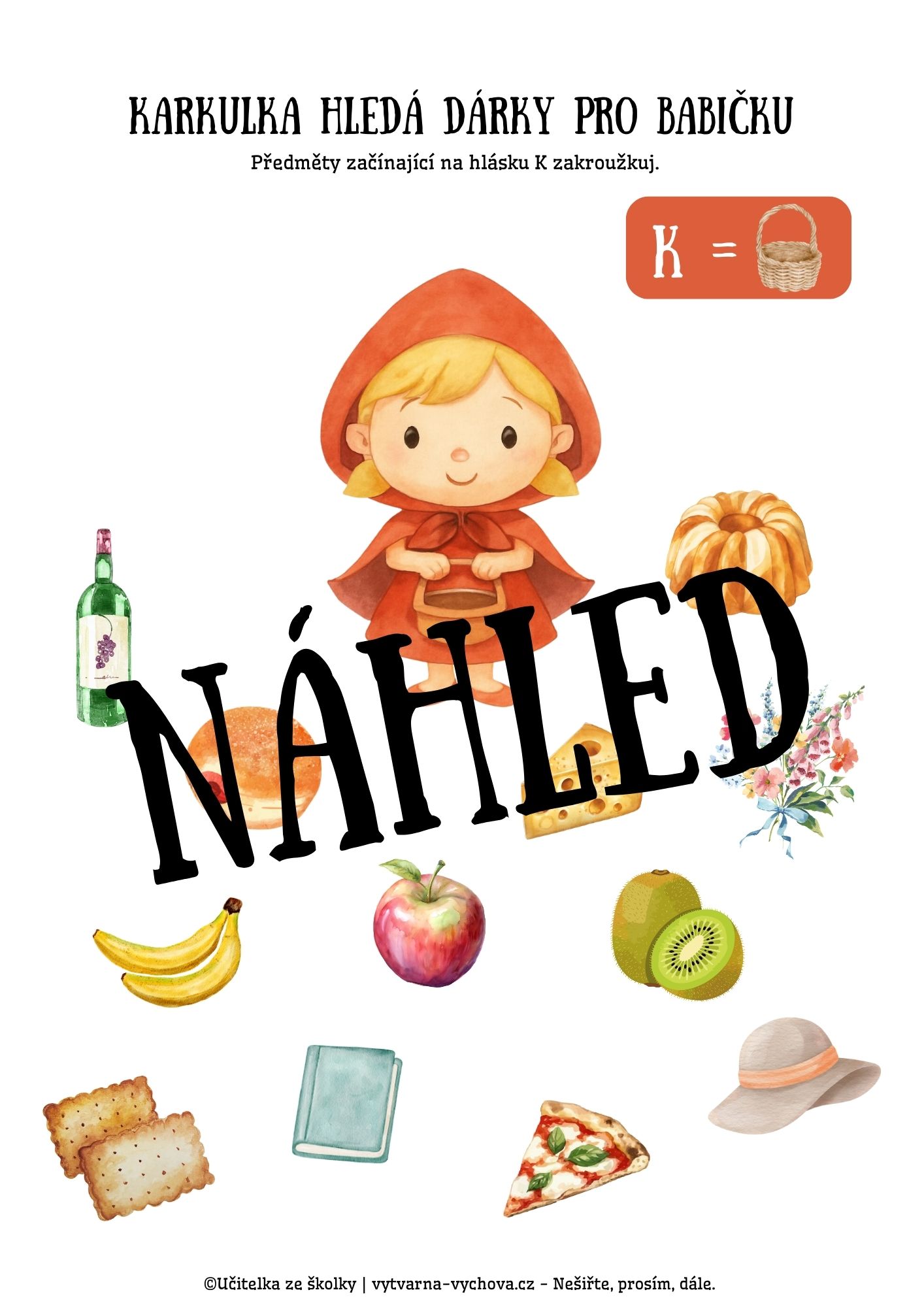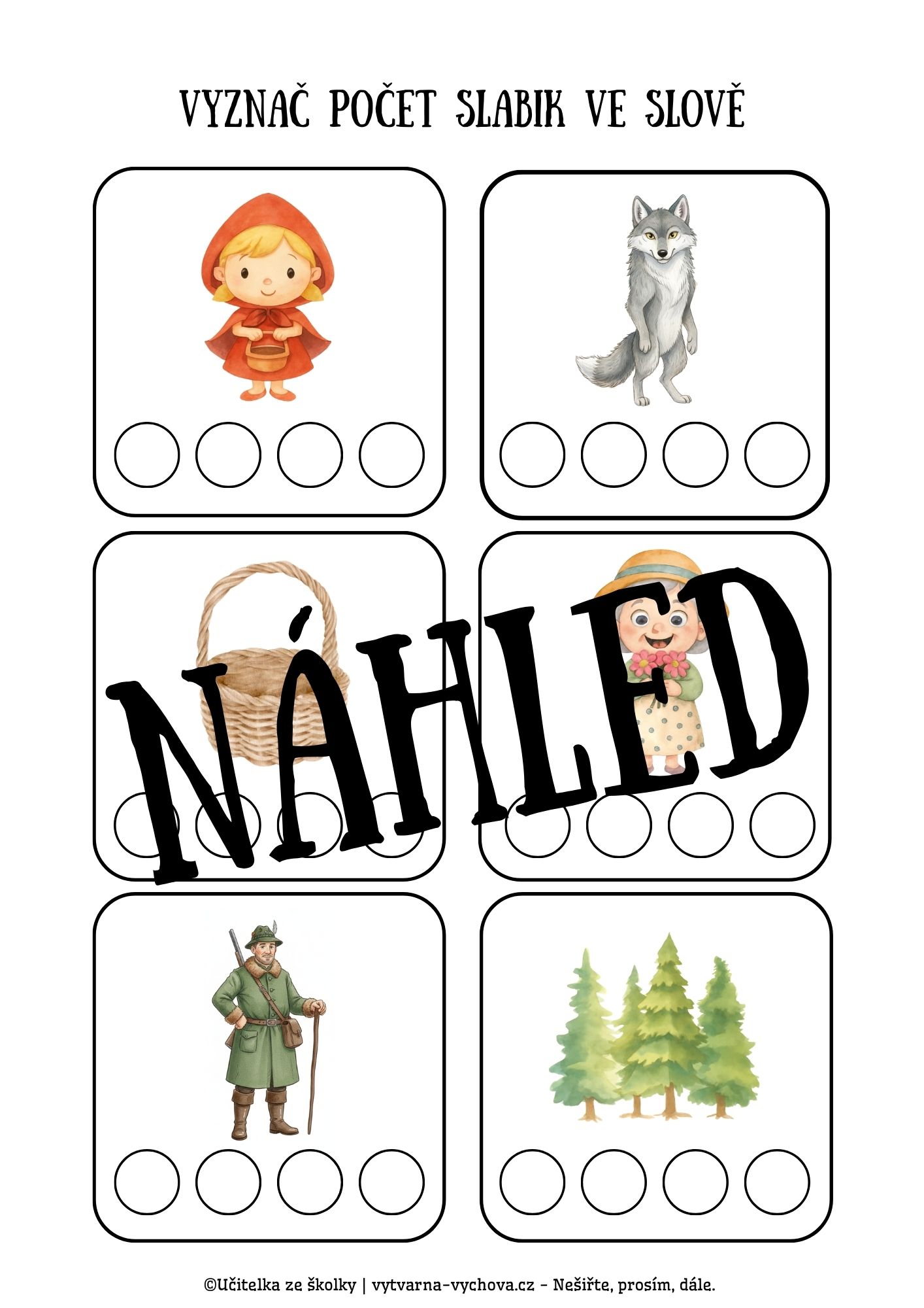 - 2× Sluchové vnímání: Určování první hlásky, vytleskávání slabik.