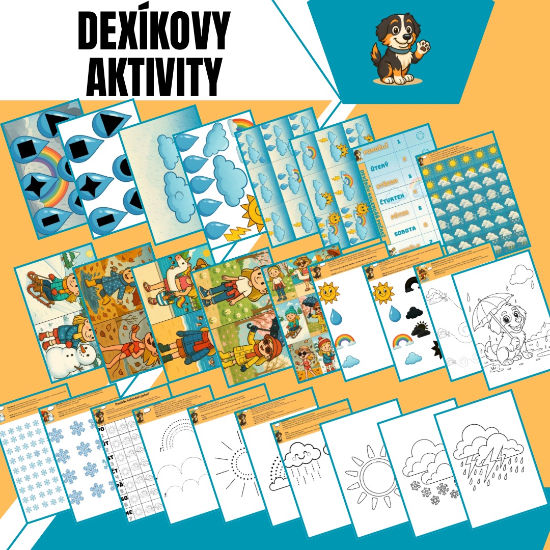 📅 Dexíkův kalendář počasí – týdenní pozorování oblohy se zalaminovaným kalendářem i pracovním listem k zapisování.