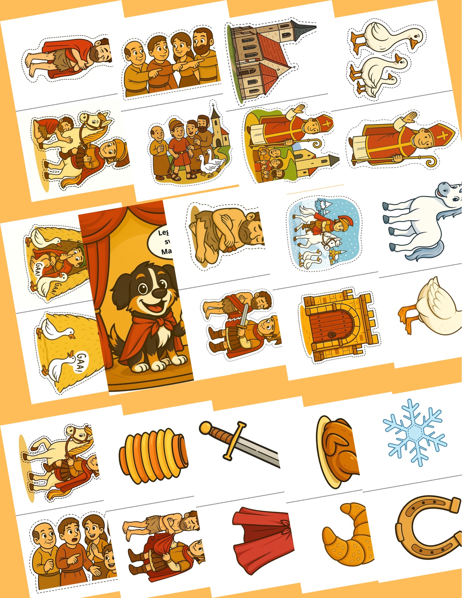 - Papírové loutky k vystřižení a divadélku – děti si mohou samy zahrát legendu o sv. Martinovi