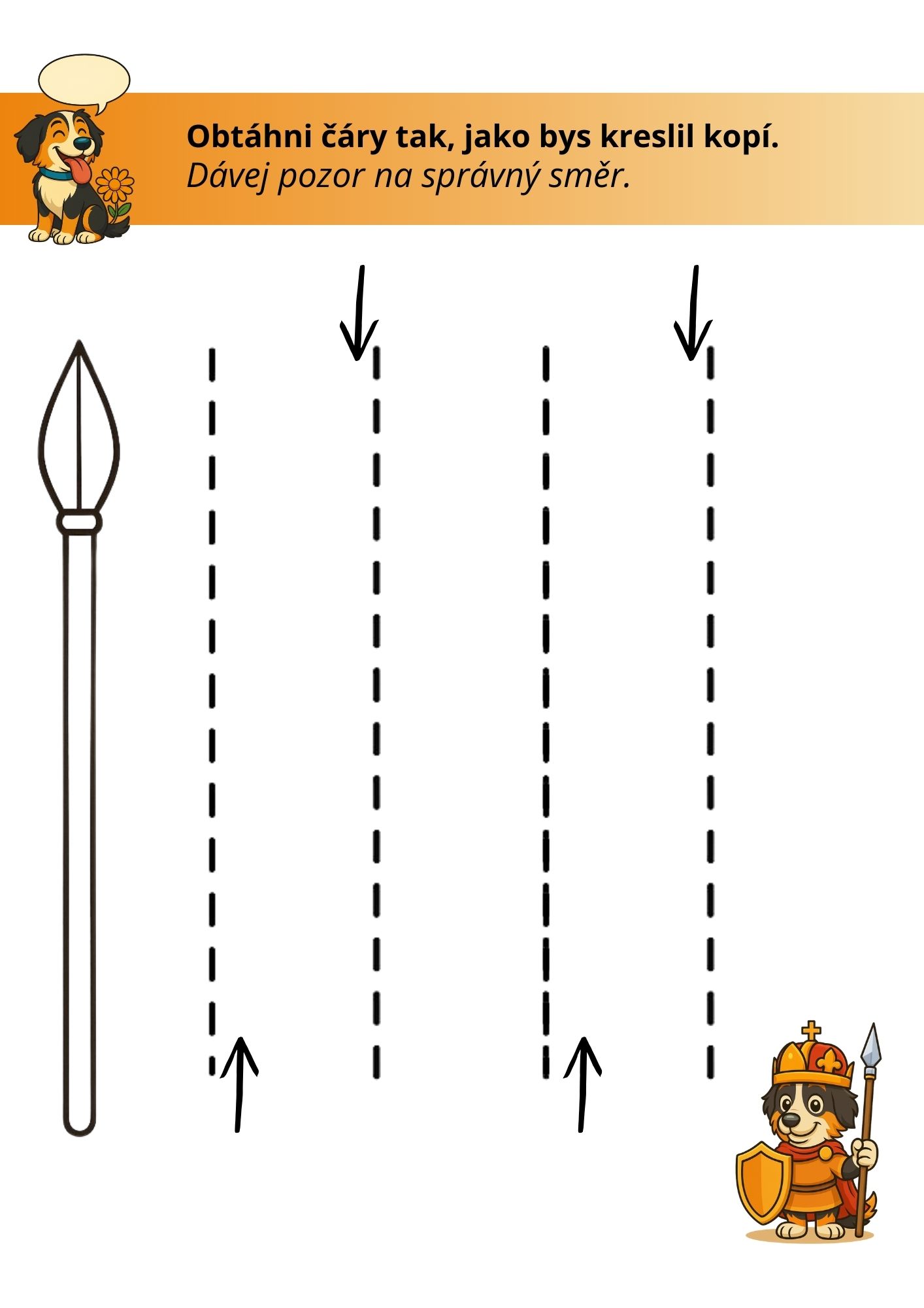 - grafomotorický list – obtahování rovných čar ve tvaru kopí,