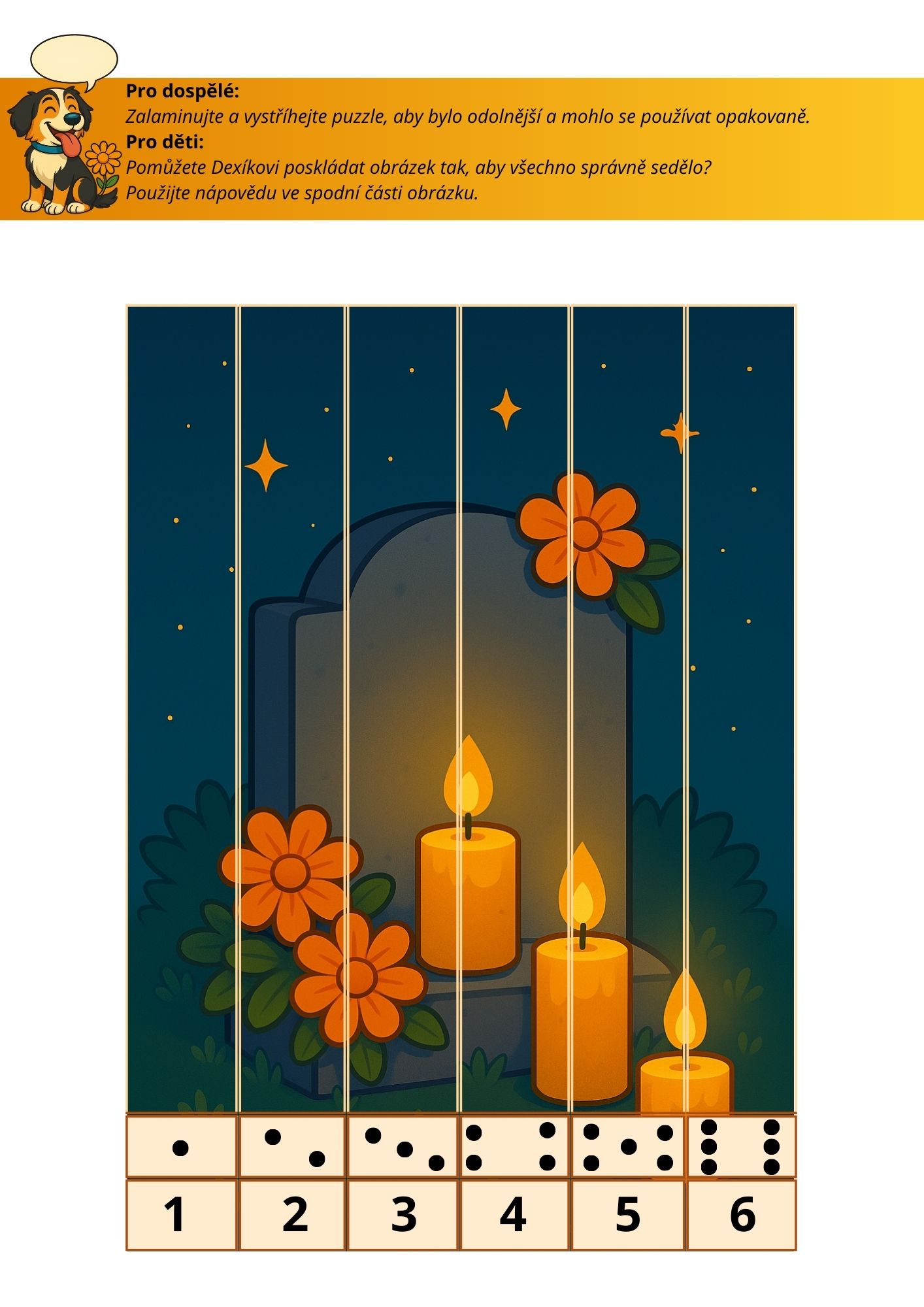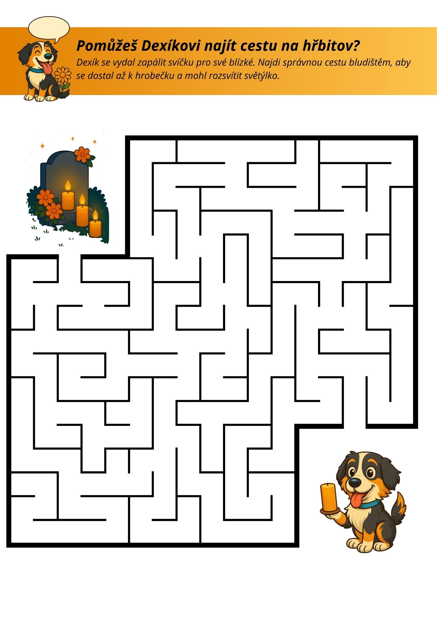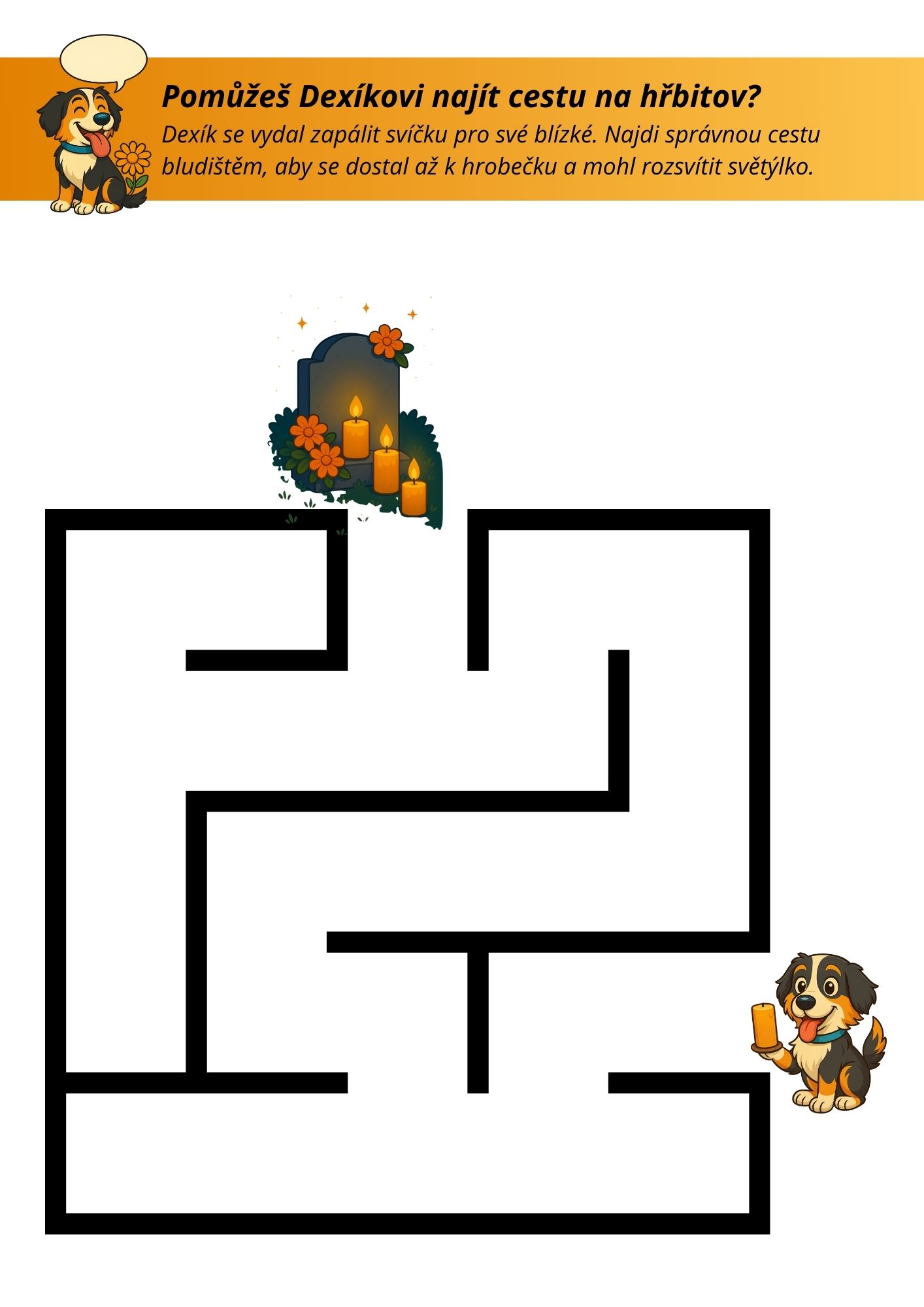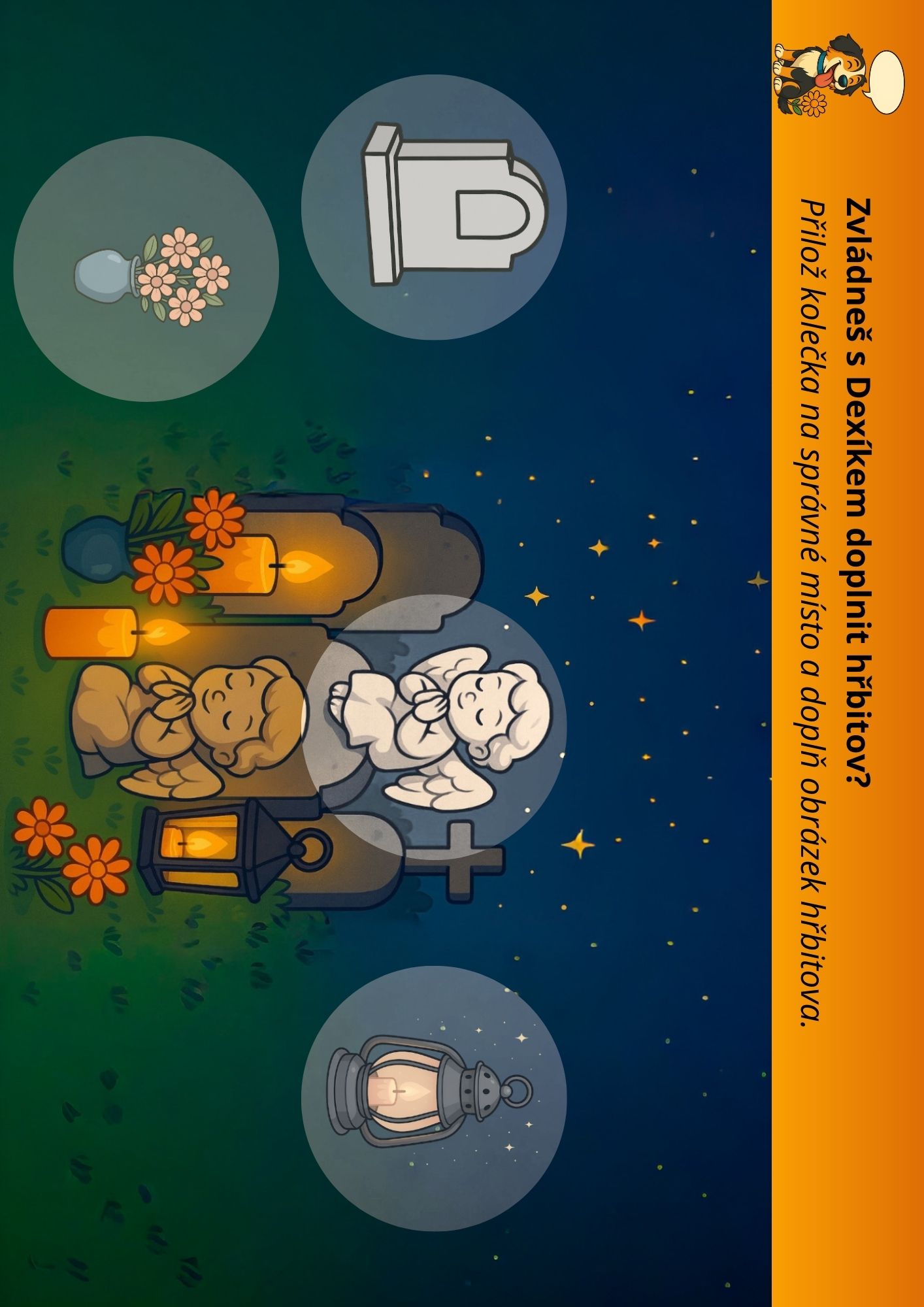 Citlivě zpracovaný materiál, který dětem přiblíží tradici Dušiček formou pohádky, pracovních listů a tvořivých aktivit. S pomocí pejska Dexíka se děti učí, že vzpomínat na své blízké může být laskavé a bezpečné.