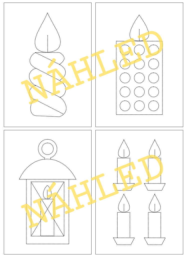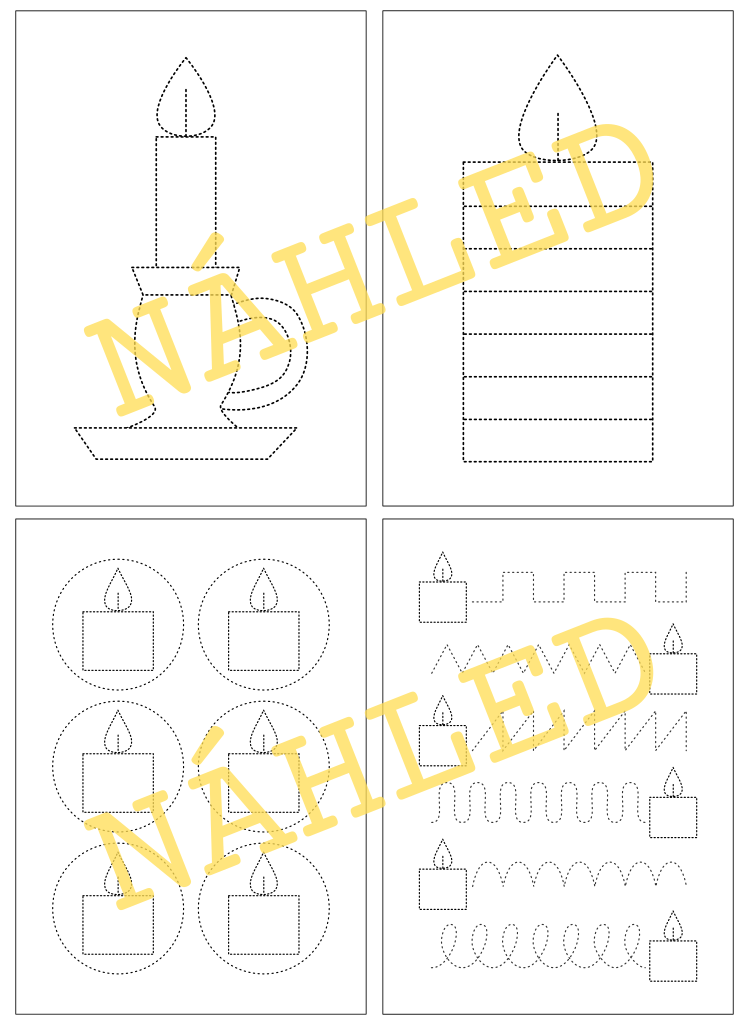 Pracovní listy vytiskněte a můžete je hned začít používat. Děti nejprve obtáhnou všechny přerušované čáry a pak vybarví obrázek/obrázky.