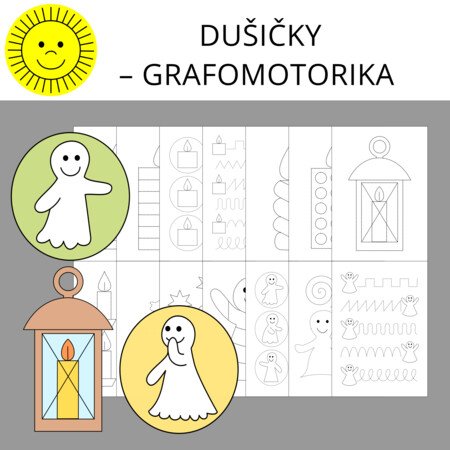 Materiál na téma Dušičky obsahuje 14 černobílých pracovních listů na procvičení grafomotoriky.
