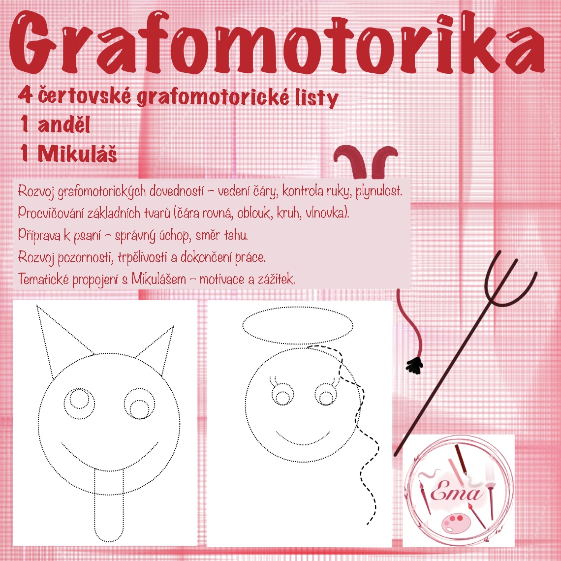 GRAFOMOTORIKA- čerti, anděl, Mikuláš