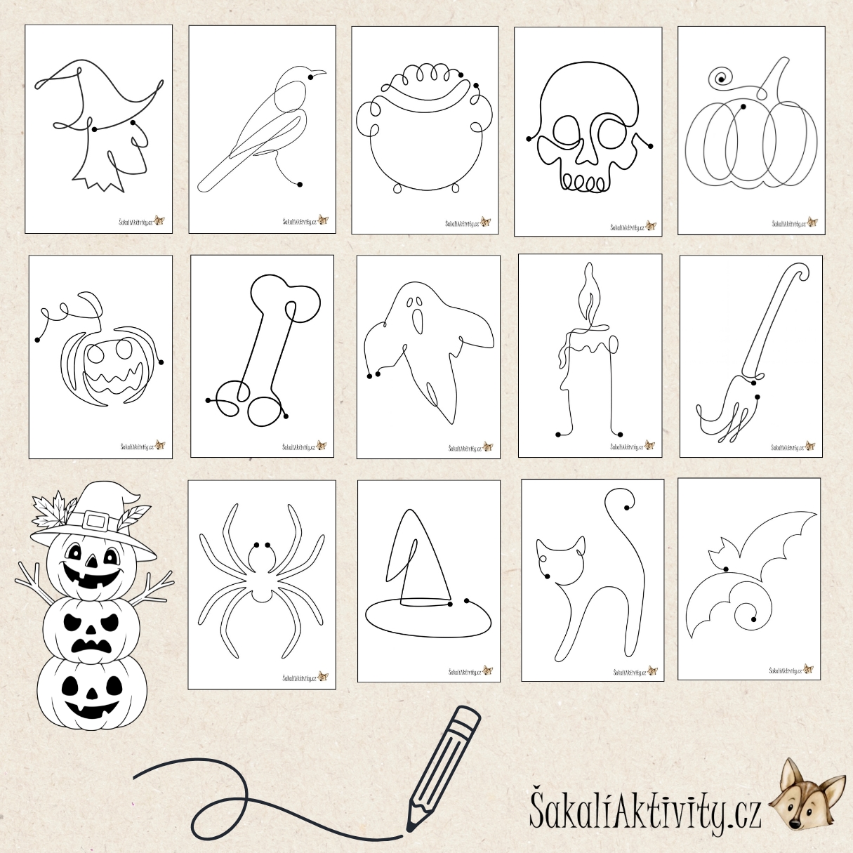 Aktivita podporuje jemnou motoriku a koordinaci oko–ruka, učí trpělivosti a koncentraci a zároveň přináší radost z objevování a tvoření. Jednotažky s halloweenskými motivy jsou skvělým nástrojem pro přípravu na psaní a správný úchop tužky. Díky PDF formátu můžete materiál vytisknout, zalaminovat a opakovaně používat – ideální pro třídy, družiny i domácí prostředí.