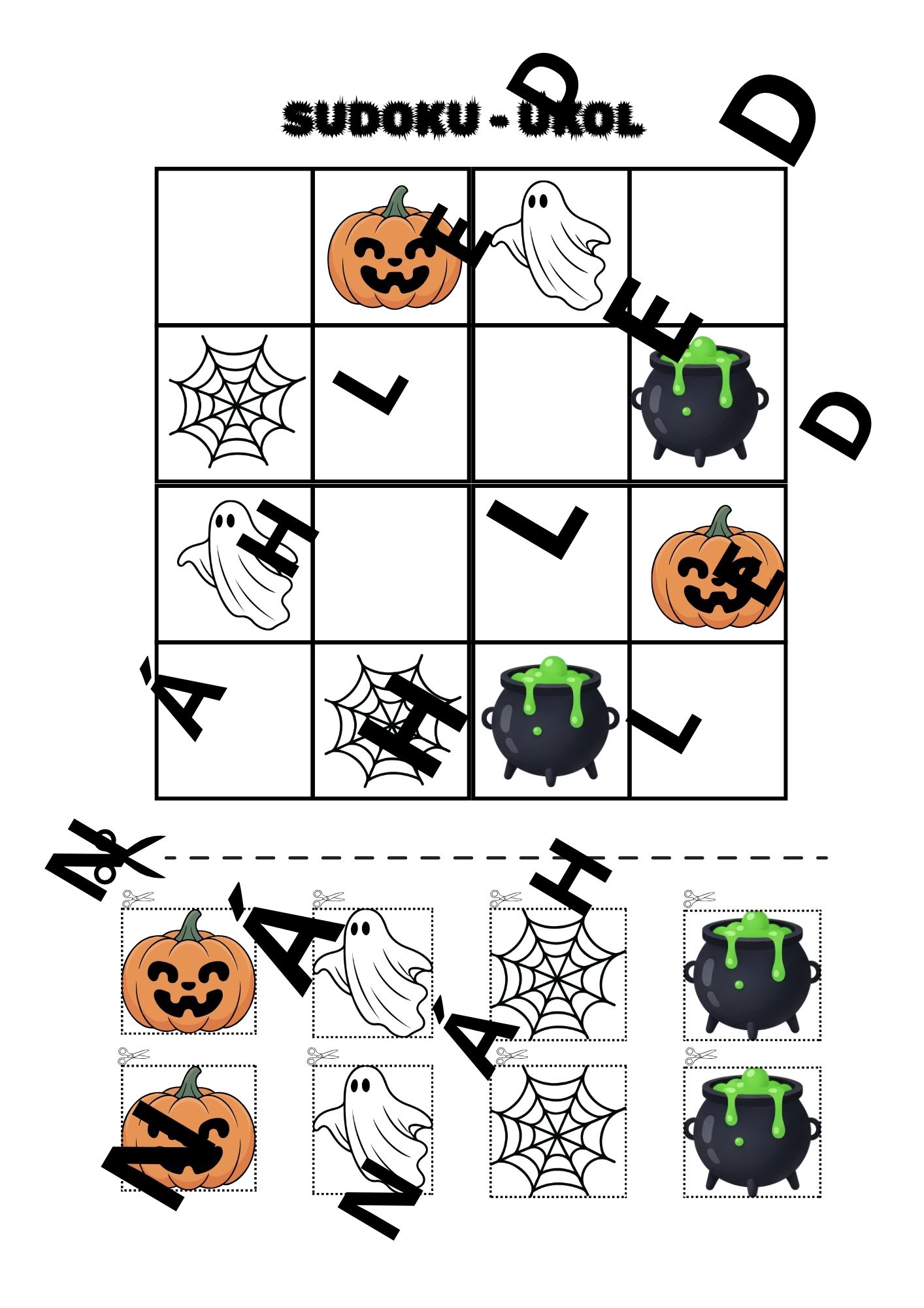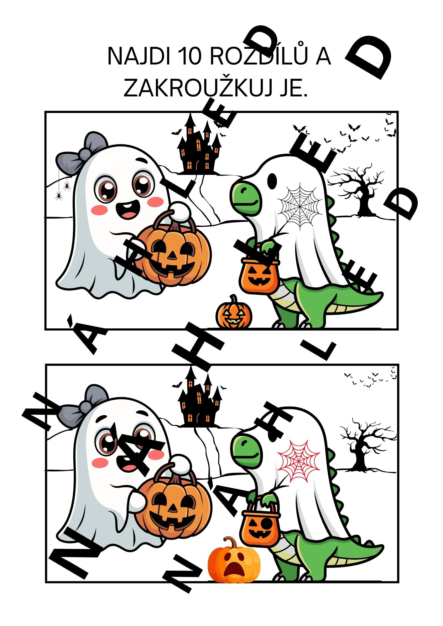 - Strašidelná pátračka - hledání obrázků pod vyhrazeném prostoru a škrtání nalezených obrázků na hrací kartě