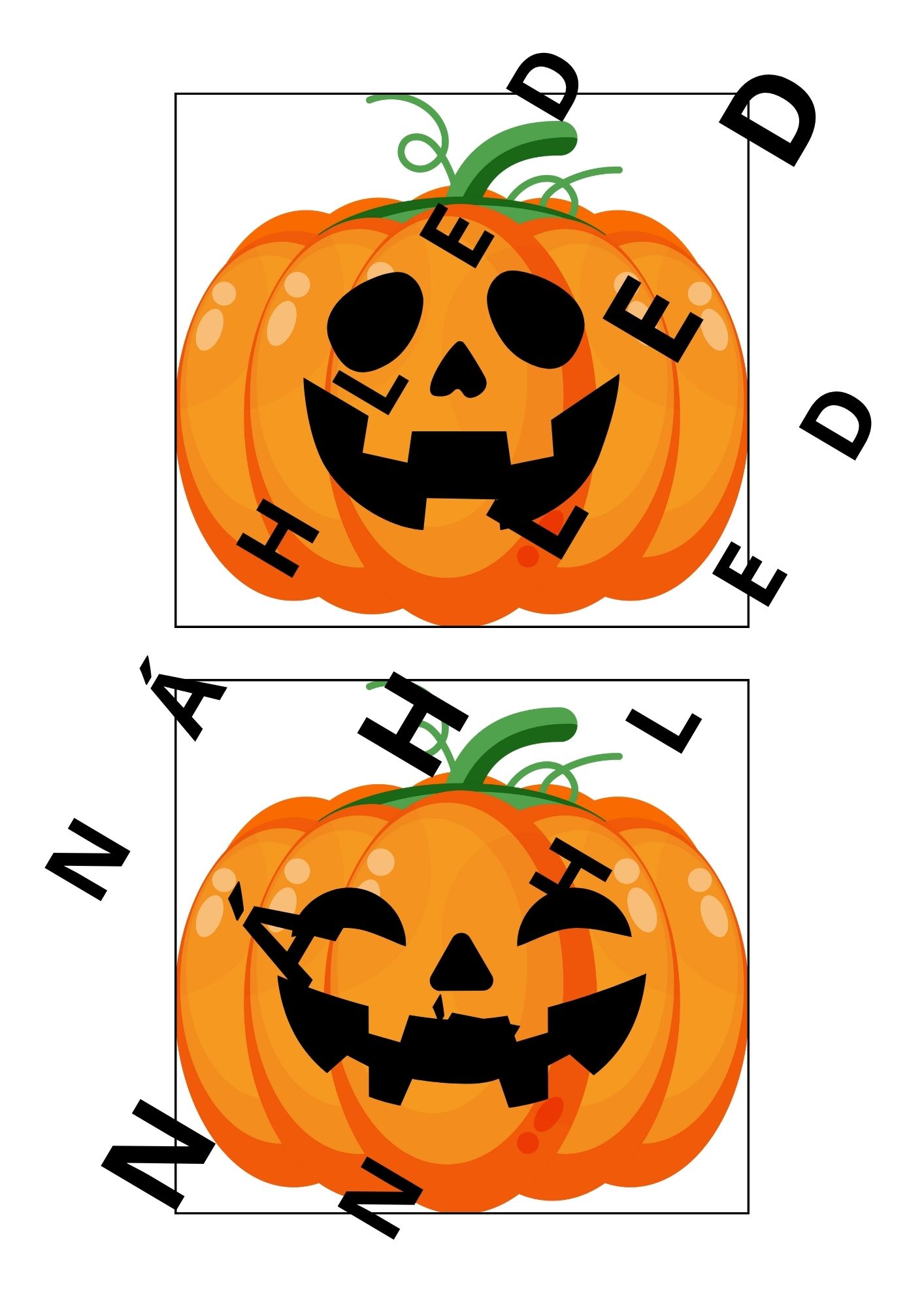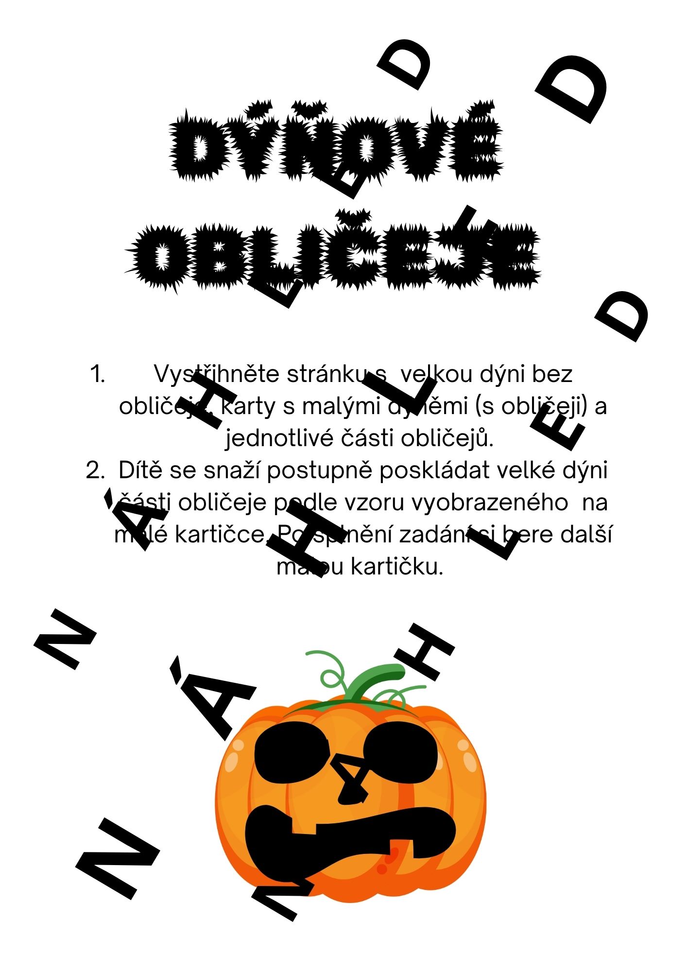 - Dýňové obličeje - přikládání částí obličeje na obrázek dýně podle předlohy na kartičce