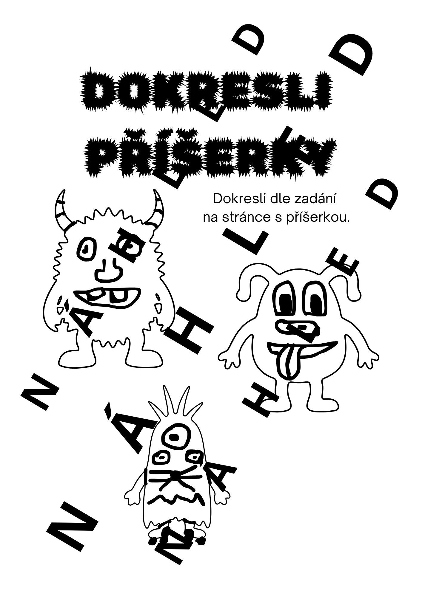- Dokresli příšerky - 3 obrázky (pouze obrysy) příšerek, děti je dokresli dle zadání na stránce s příšerkou (u každé příšerky je zadání jiné)