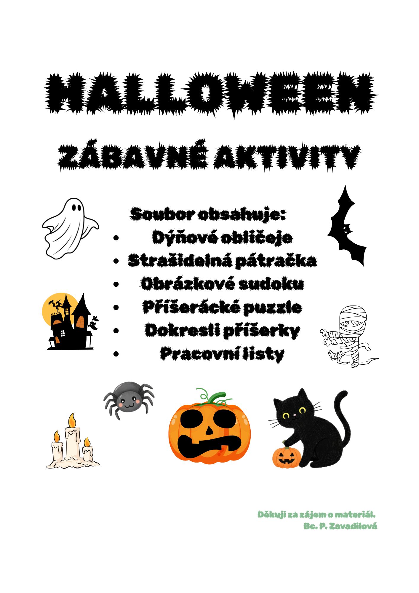 Soubor obsahuje 36 stran zábavných aktivit na téma Halloween (součástí jsou i instrukce, jak s materiálem pracovat).