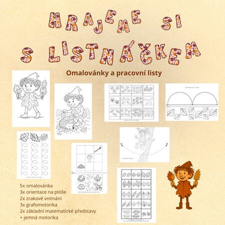 Hrajeme si s Listnáčkem - omalovánky a pracovní listy