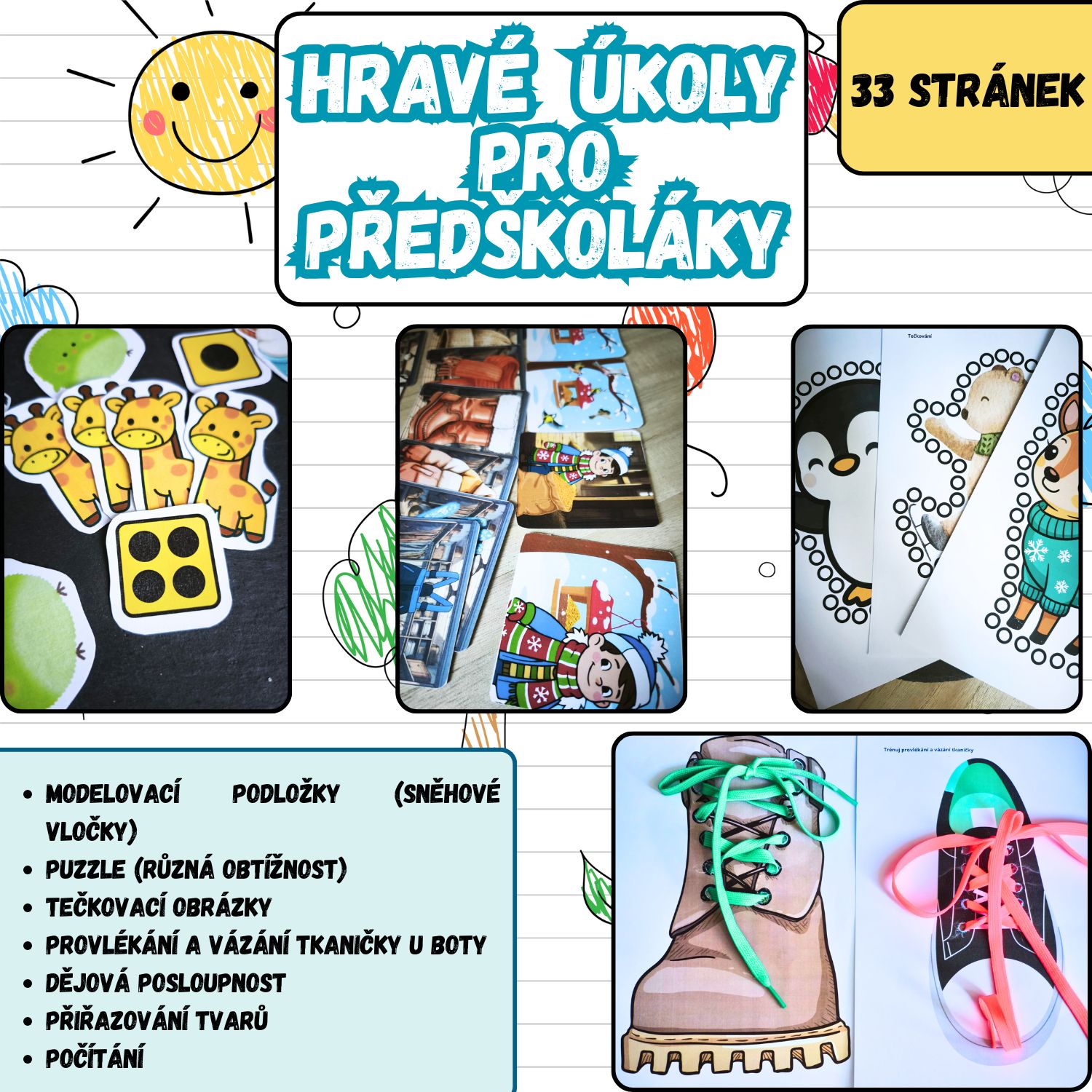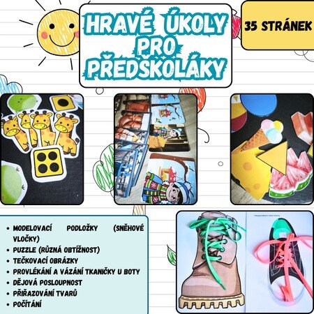 Tento soubor je určen dětem předškolního věku a dětem chystajícím se k zápisu do 1. třídy. Jednotlivé aktivity jsou navržené tak, aby rozvíjely důležité dovednosti potřebné pro nástup do školy, a to hravou a nenásilnou formou.