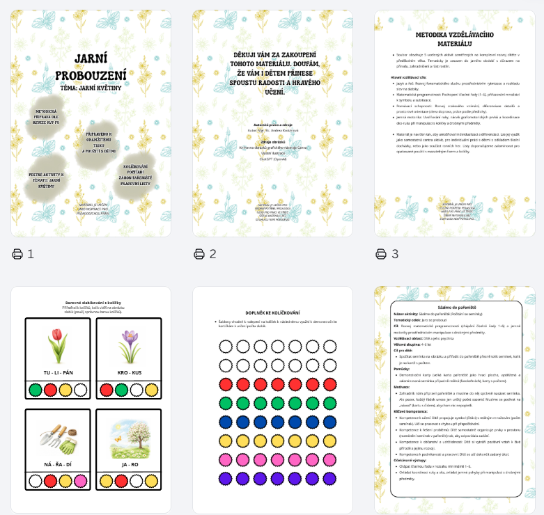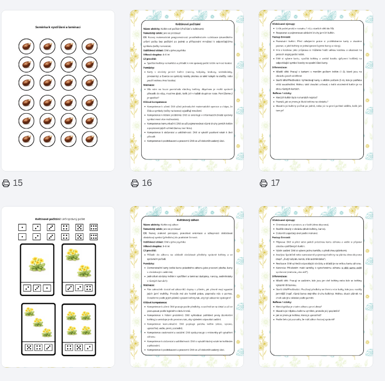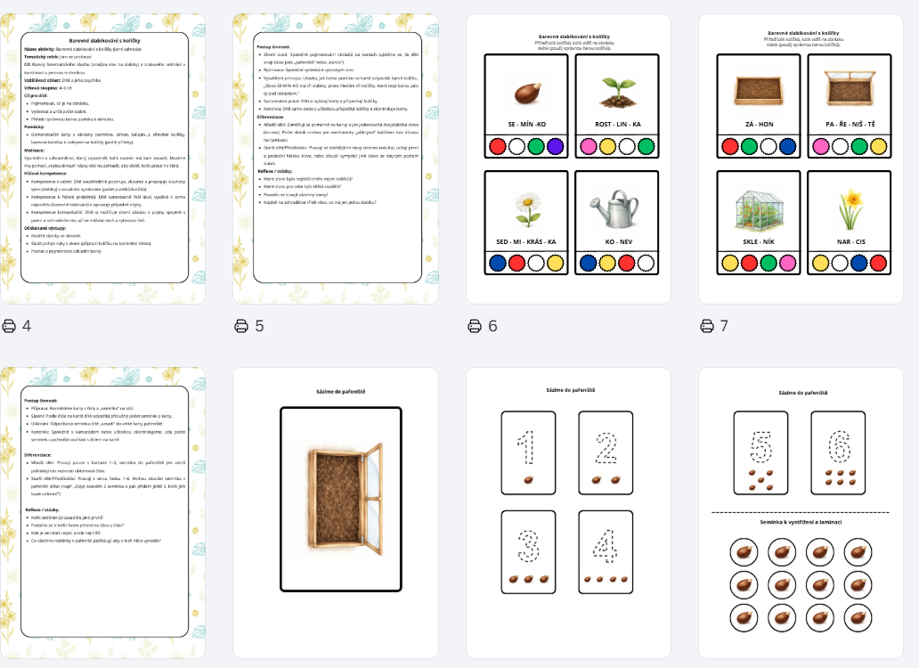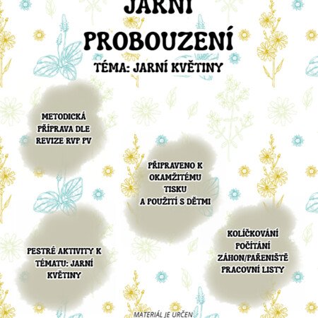 Tento metodický soubor nabízí 5 ucelených, hravých aktivit pro děti ve věku 4–6 let, které propojují oblíbené téma jarní zahrady s rozvojem klíčových dovedností. Materiál je kompletně zpracován podle revize RVP PV a zaměřuje se na rozvoj fonematického sluchu (slabikování), matematické pregramotnosti (počet 1–6), zrakové percepce a jemné motoriky.