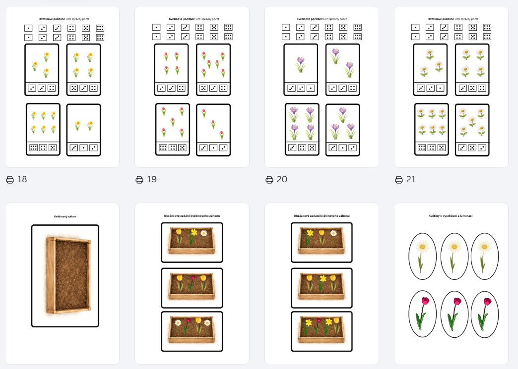 - Demonstrační karta záhonu s kartami obrázkového zadání záhonu s květinami.