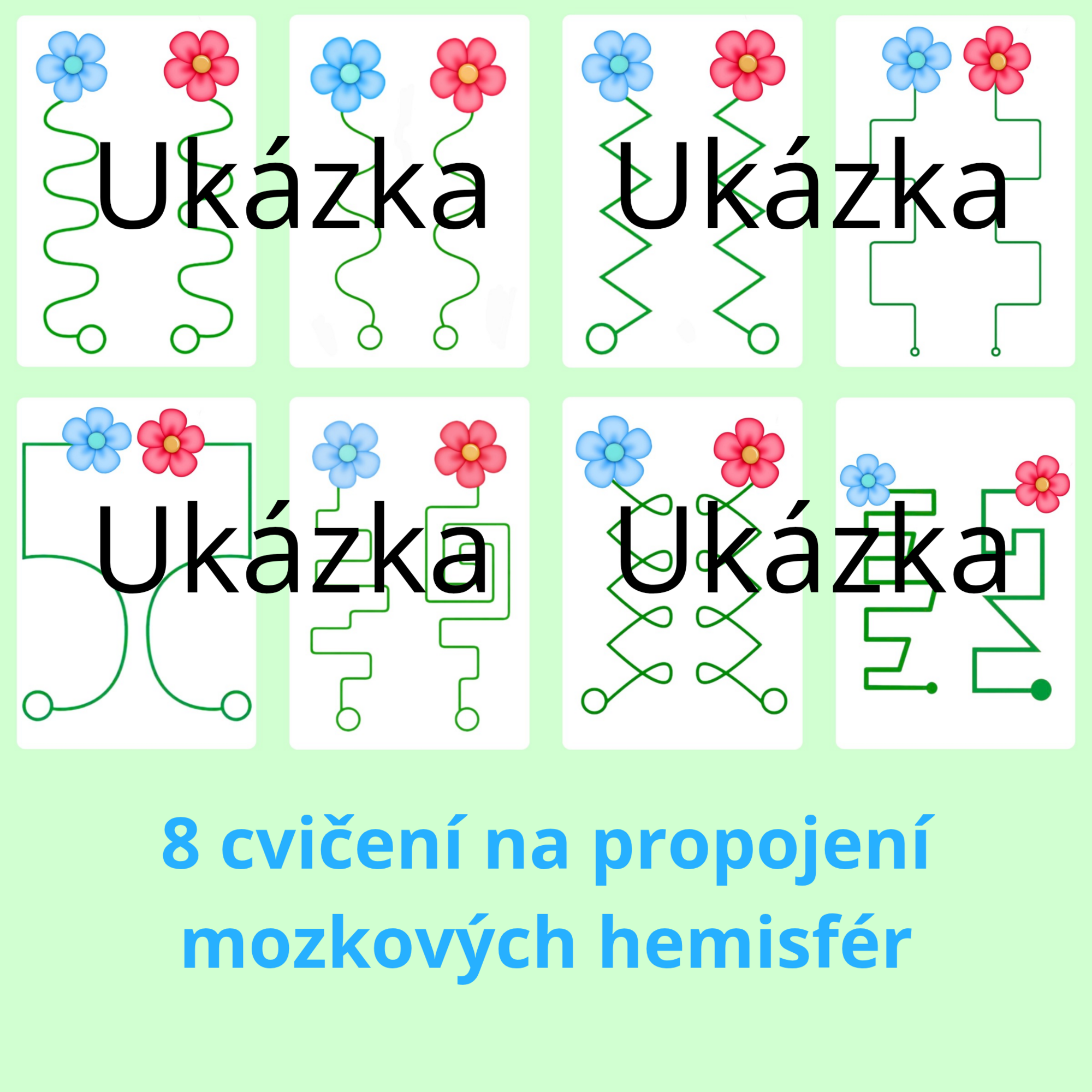 Těchto 8 cvičení ve formě pracovních listů se zaměřuje na propojení mozkových hemisfér. Jde o koordinaci oka a obou rukou zároveň.