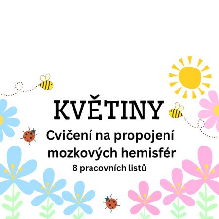 Úkolem dětí je, prstem obtáhnout stonky květin oběma rukama součastně. Tímto podporujeme propojení pravé a levé hemisféry v mozku a lepší soustředění.