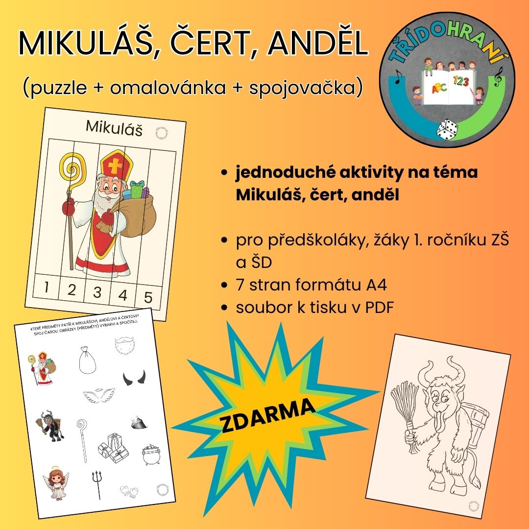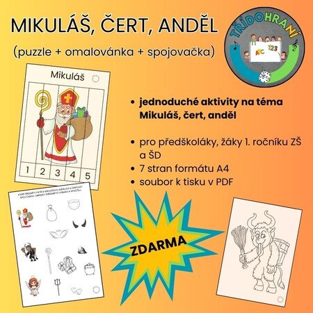 👺 MIKULÁŠ, ČERT, ANDĚL - puzzle, omalovánka, spojovačka 👼