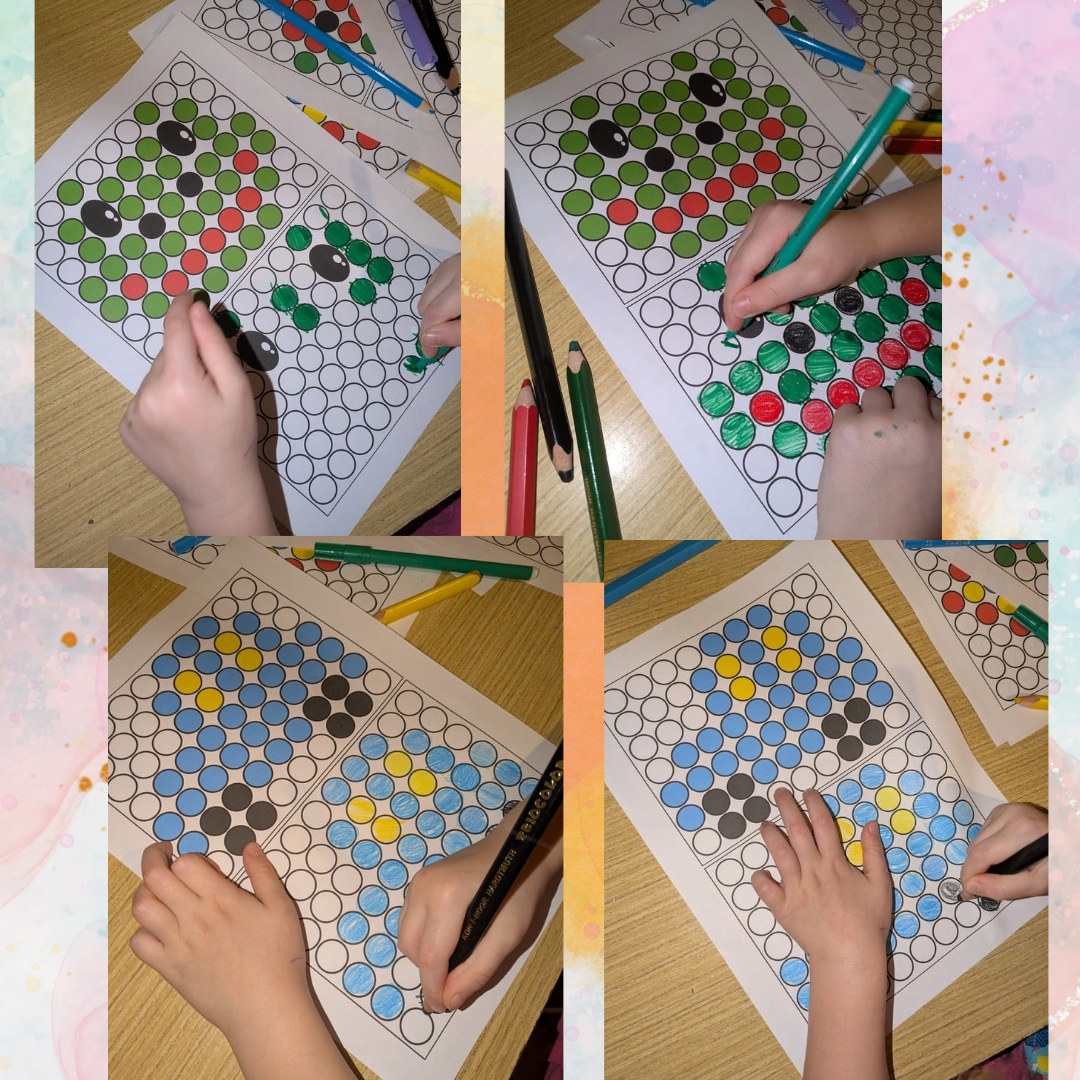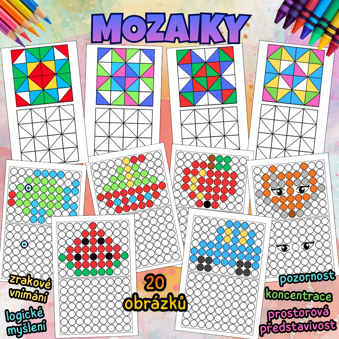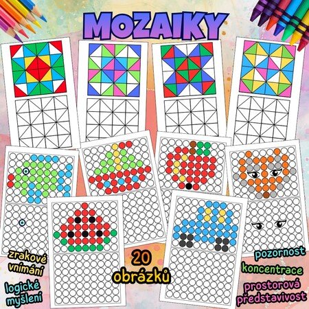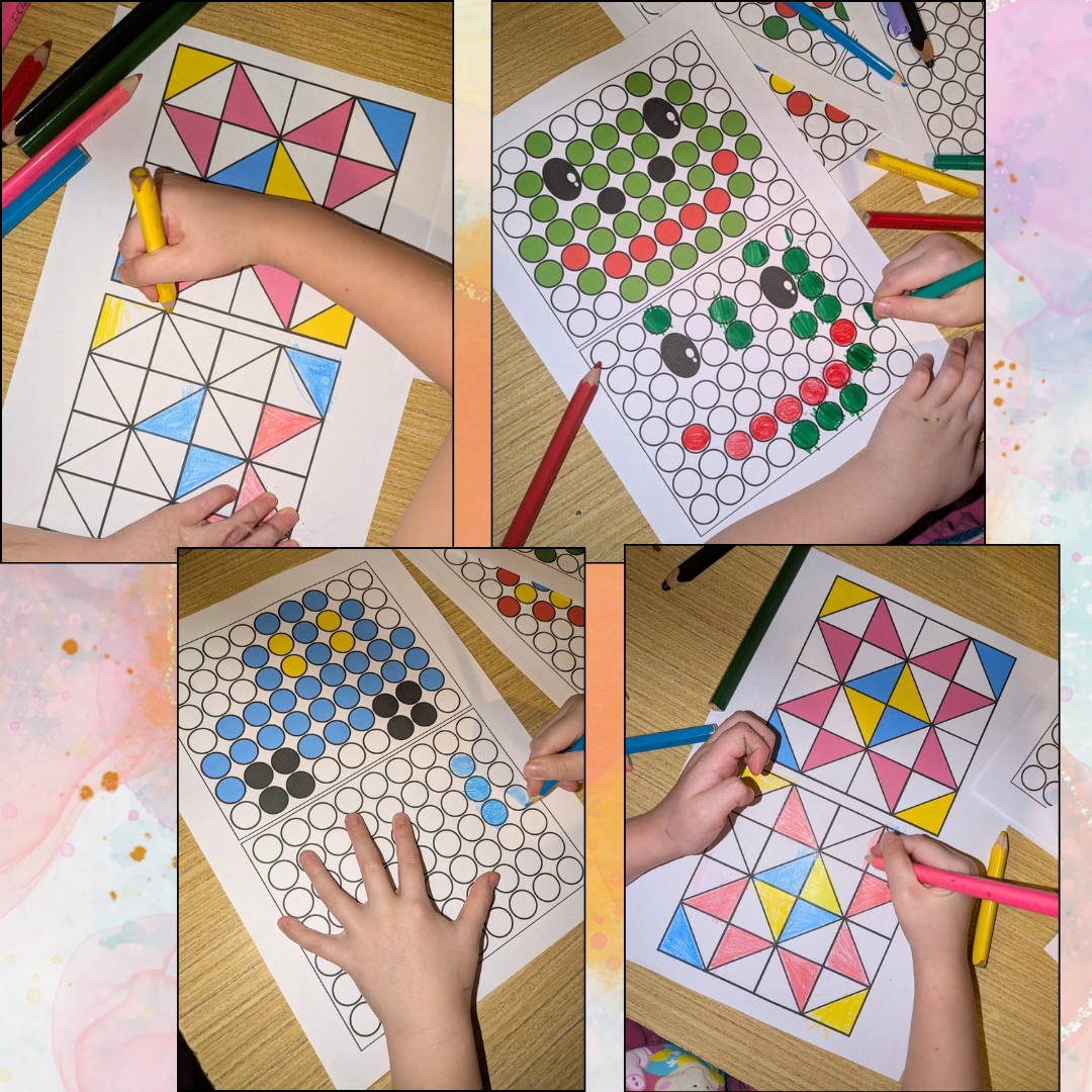 Potrapte hlavičky, potrénujte zrakové vnímání a rozlišování, pozornost, koncentraci, logické myšlení a prostorovou představivost a vytvořte si veselé barevné obrázky! 🖍️