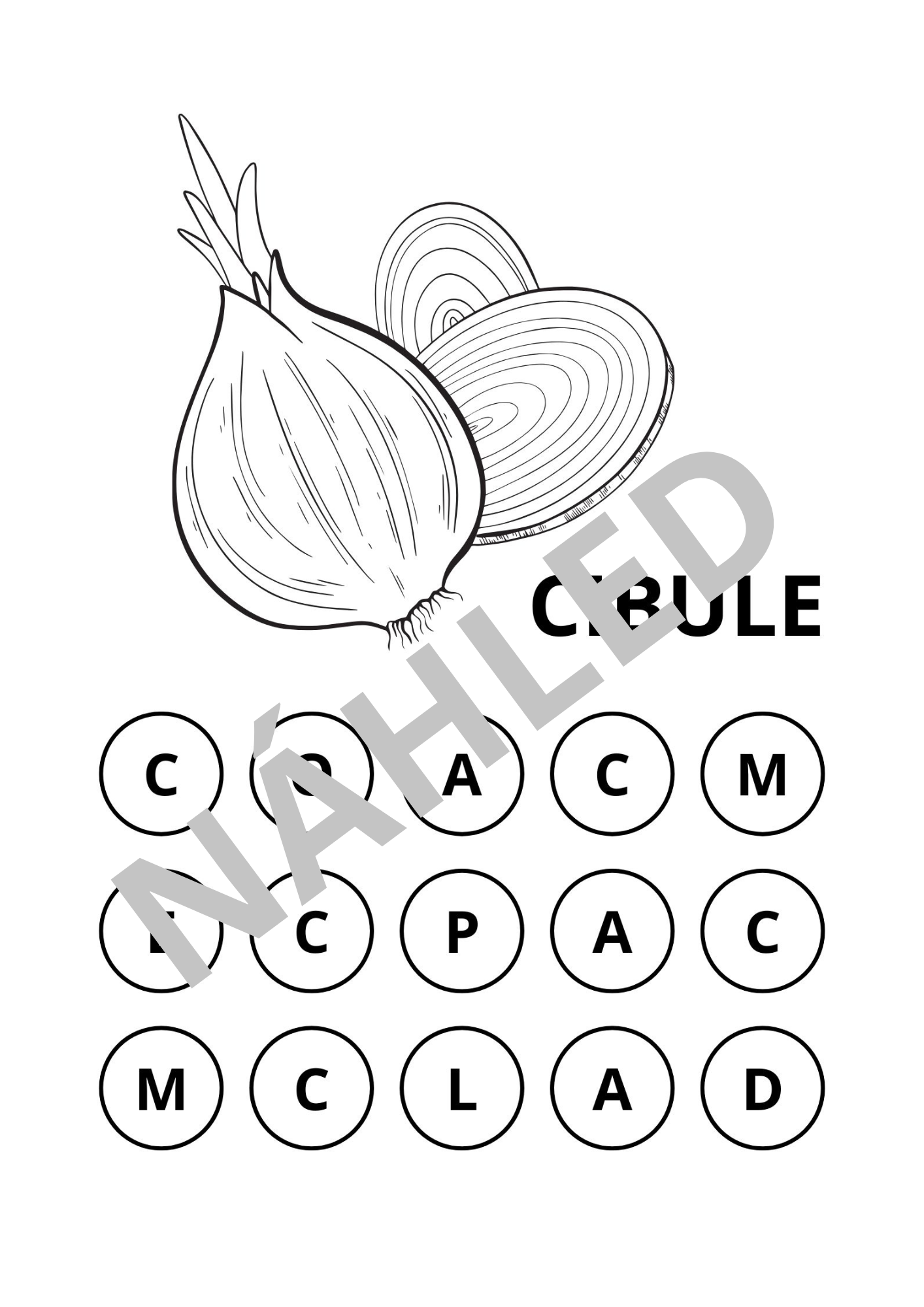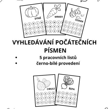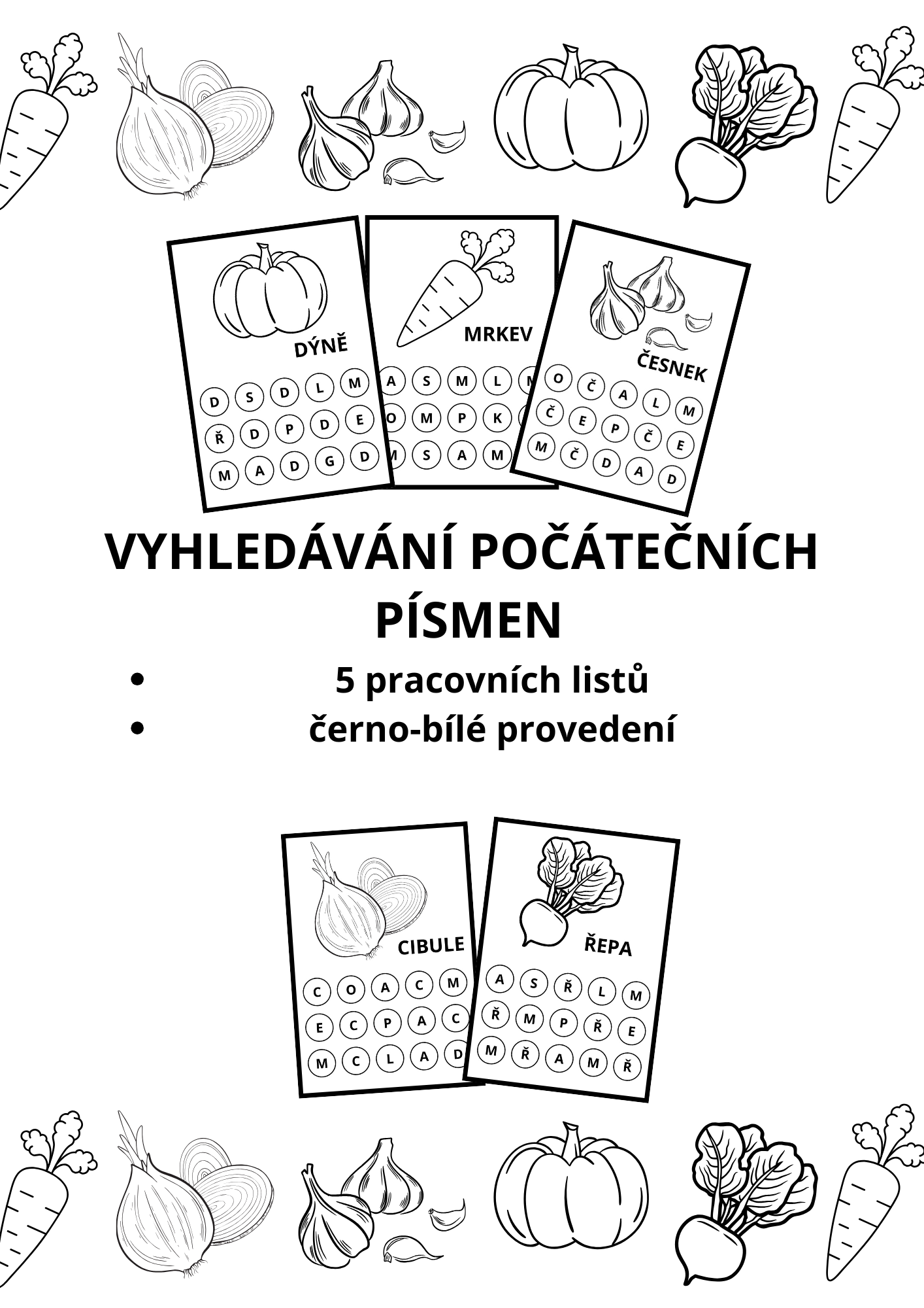 ve kterém naleznete 5 pracovních listů na vyhledávání počátečních písmenek pozimní zeleniny.