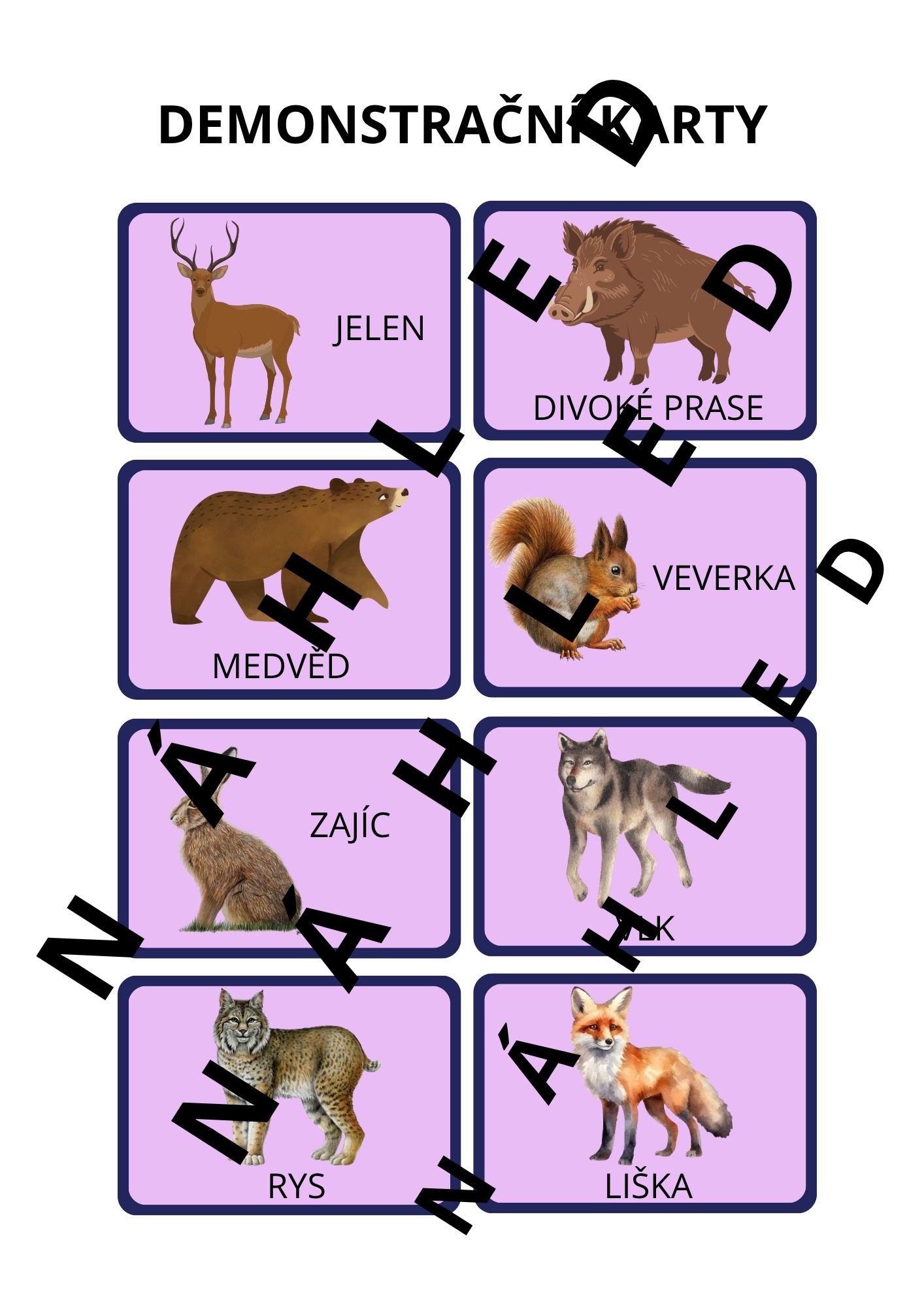 - str. 2 - 5 - demonstrační karty zvířat (tvoření vět)