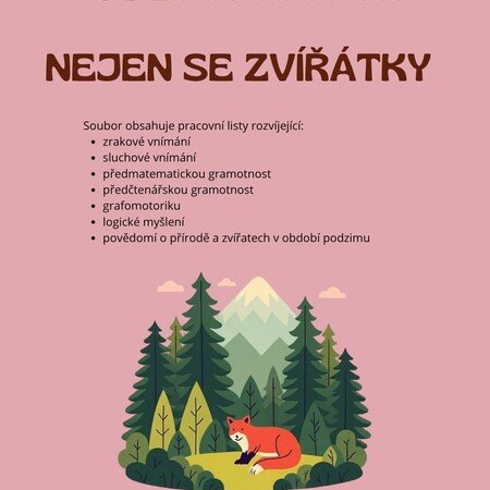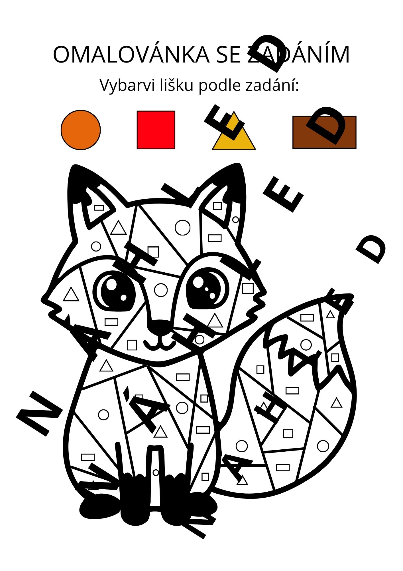 - str. 6 - 7 - omalovánka lišky se zadáním - vykreslování částí dle barev geometrických barev (k dispozici barevná verze i černobílá pro zvolení vlastních barev)