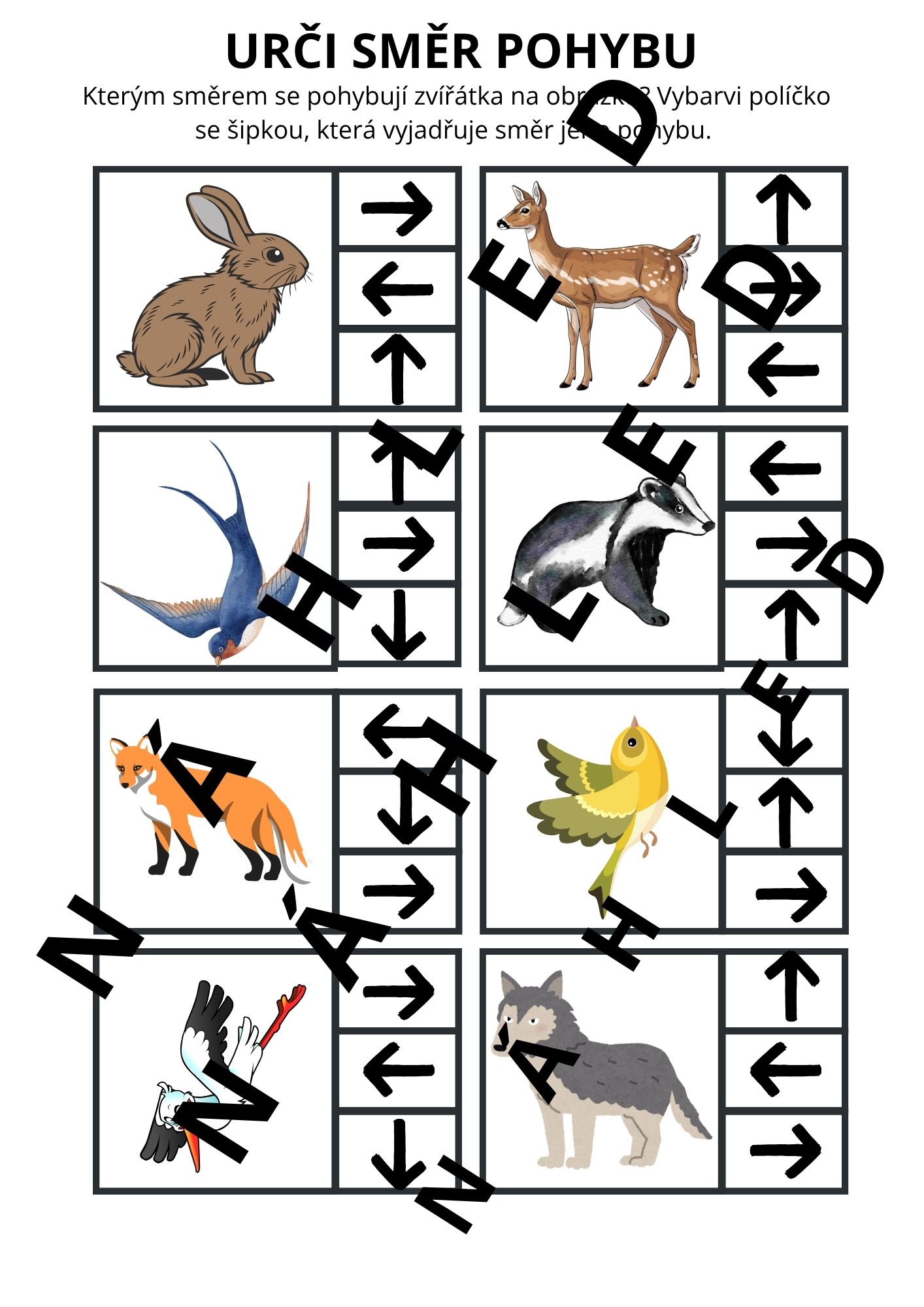- str. 13 - lesní zvěř - vybarvi pouze zvířátka žijící v lese