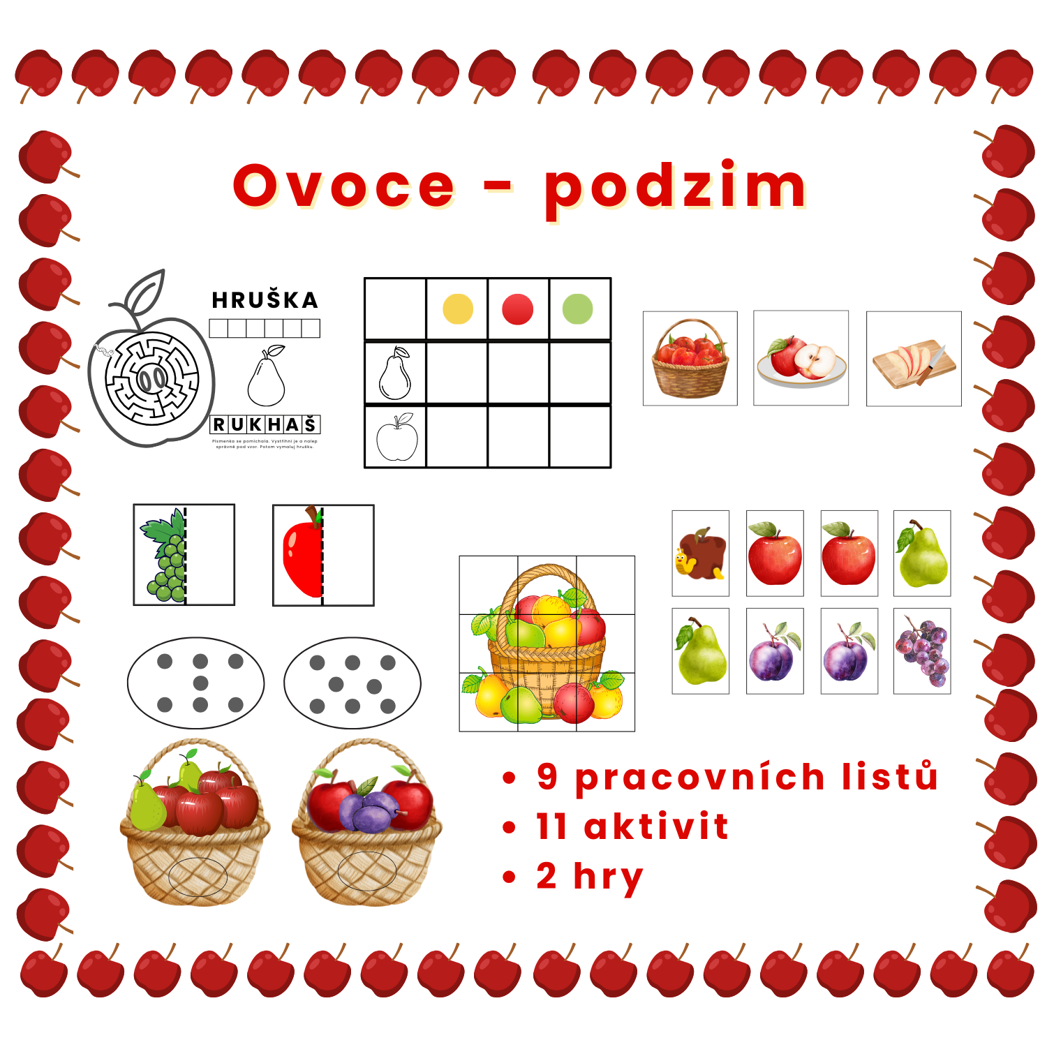 3 stránky A4 - společenská hra "Černý Petr" na téma ovoce