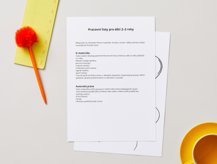 Tento soubor obsahuje jednoduché pracovní listy určené pro děti ve věku přibližně 2–3 roky.