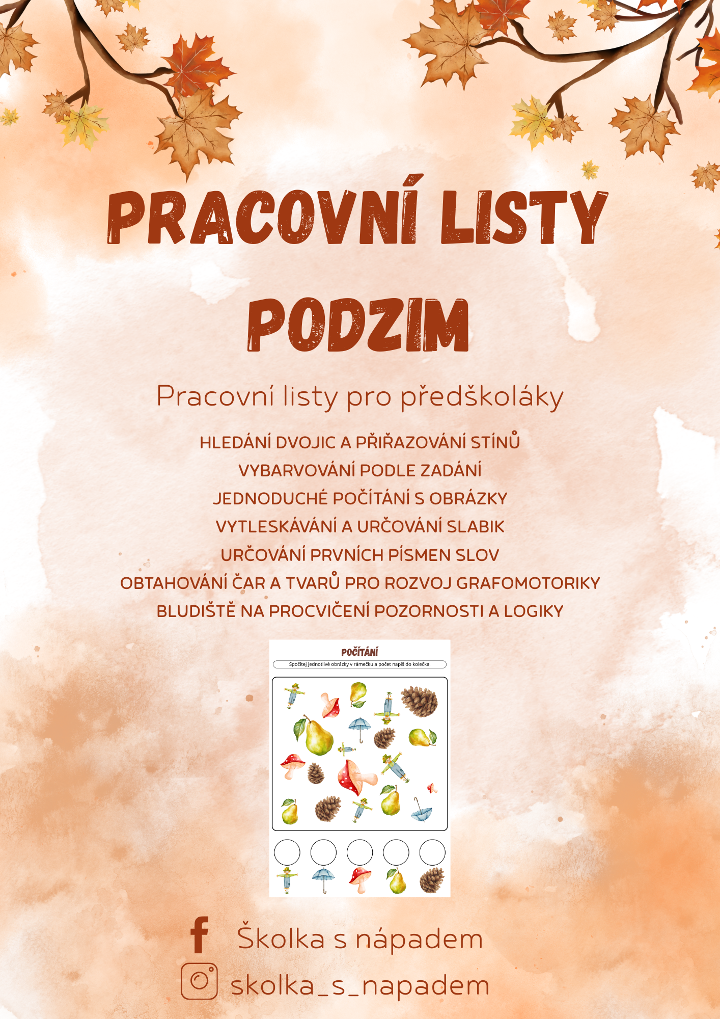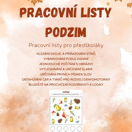 🍁 Pracovní listy pro předškoláky – PODZIM