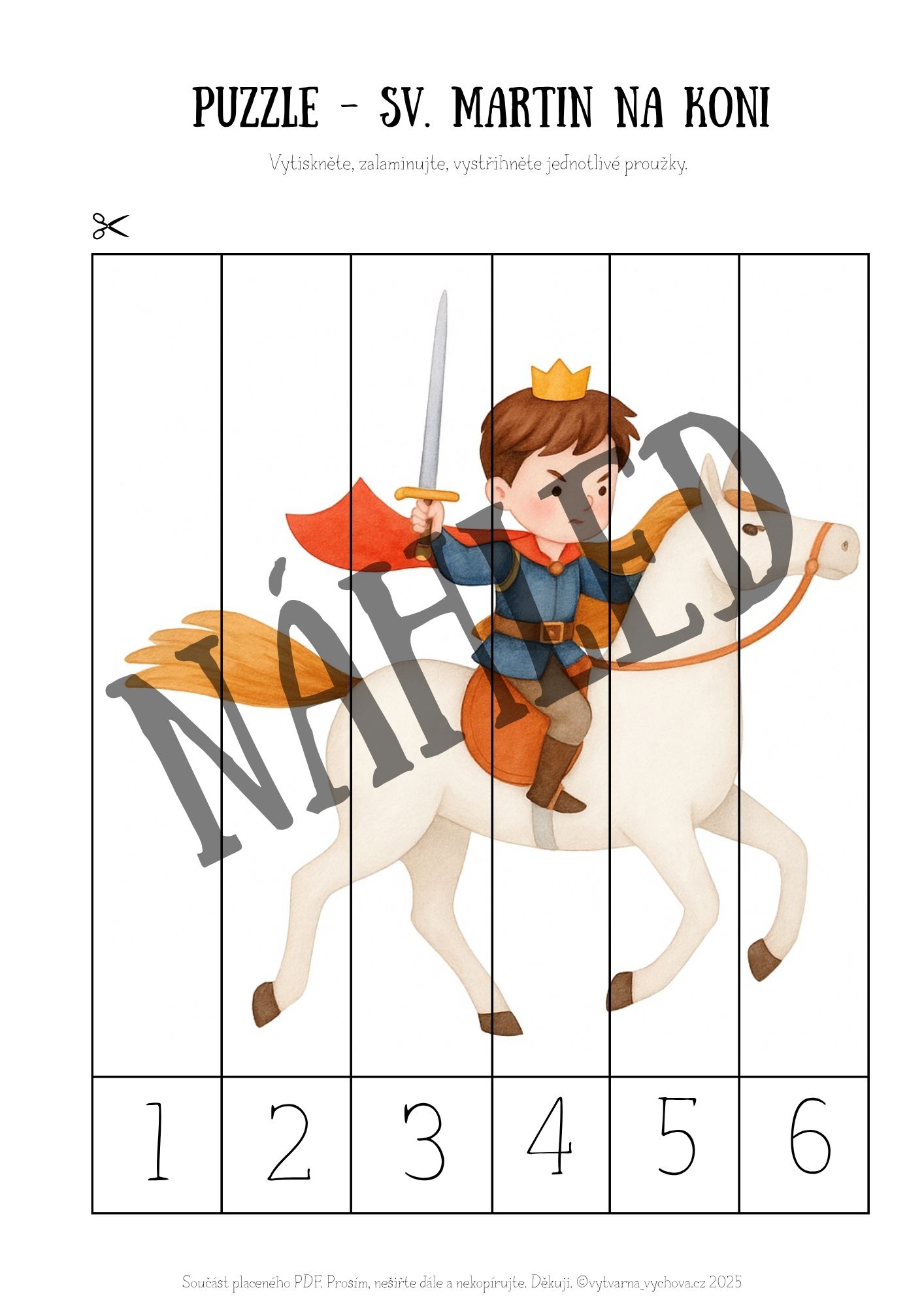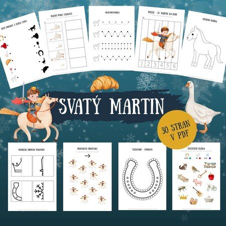Obsáhlý soubor 30 stran pracovních listů, grafomotoriky, puzzle, tečkování, dokreslování na téma: SVATÝ MARTIN.