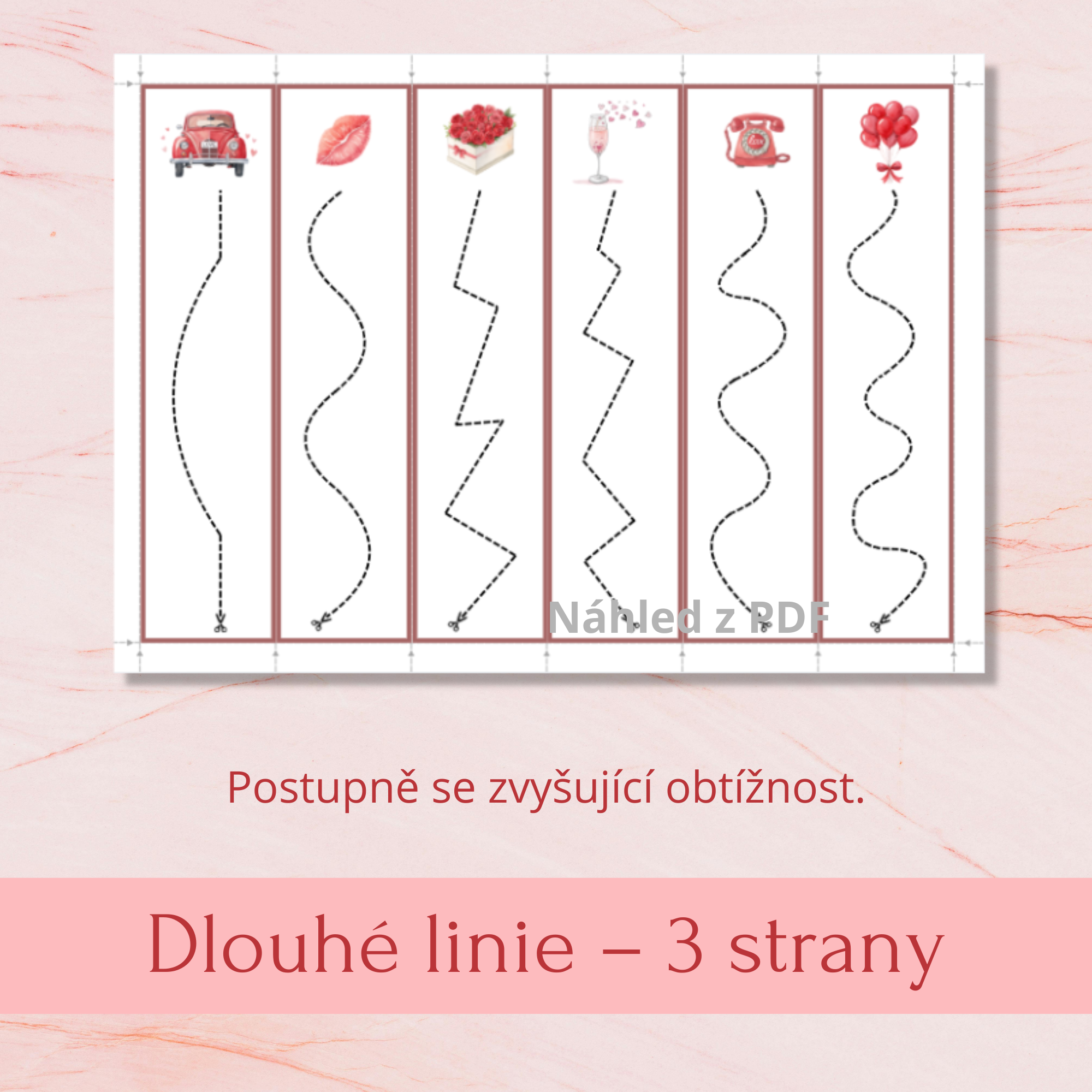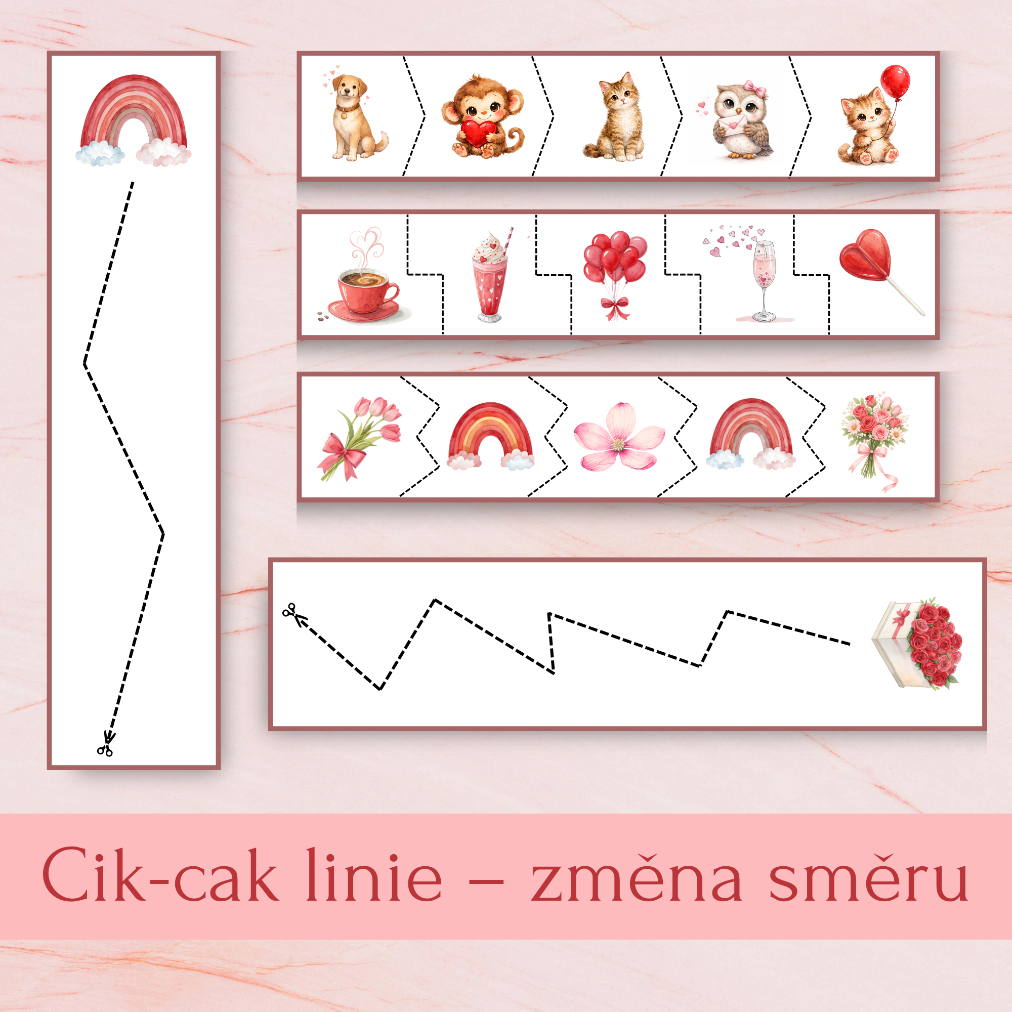 Materiál podporuje přirozený rozvoj práce s nůžkami v návaznosti na vývoj dítěte. Jednotlivé pásky jsou uspořádány od jednoduchých rovných linií přes šikmé čáry, oblouky, vlnovky a cik-cak čáry až k delším liniím a tvarům.