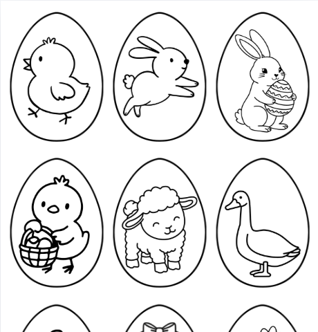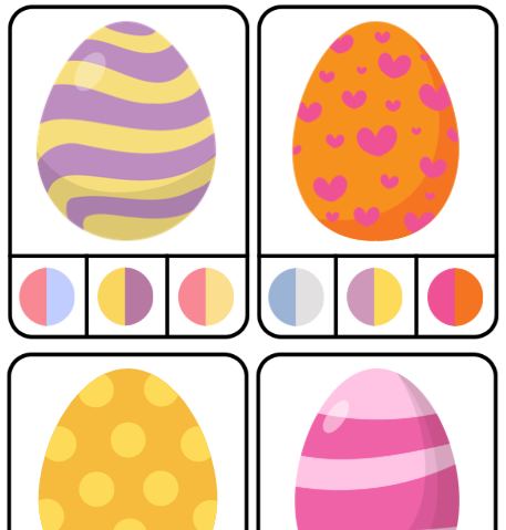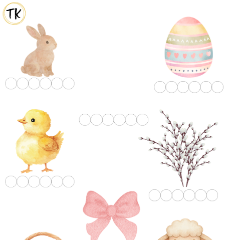 Pracovní list na rytmizaci slov, hledání stínů, kolíčkohraní, grafomotorické kraslice, prosvětlovačku a didaktickou hru „Kdo se skrývá za vajíčkem?”