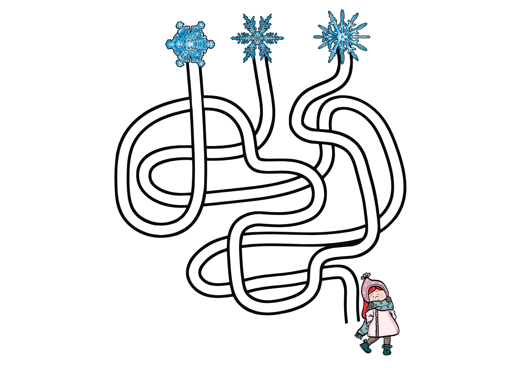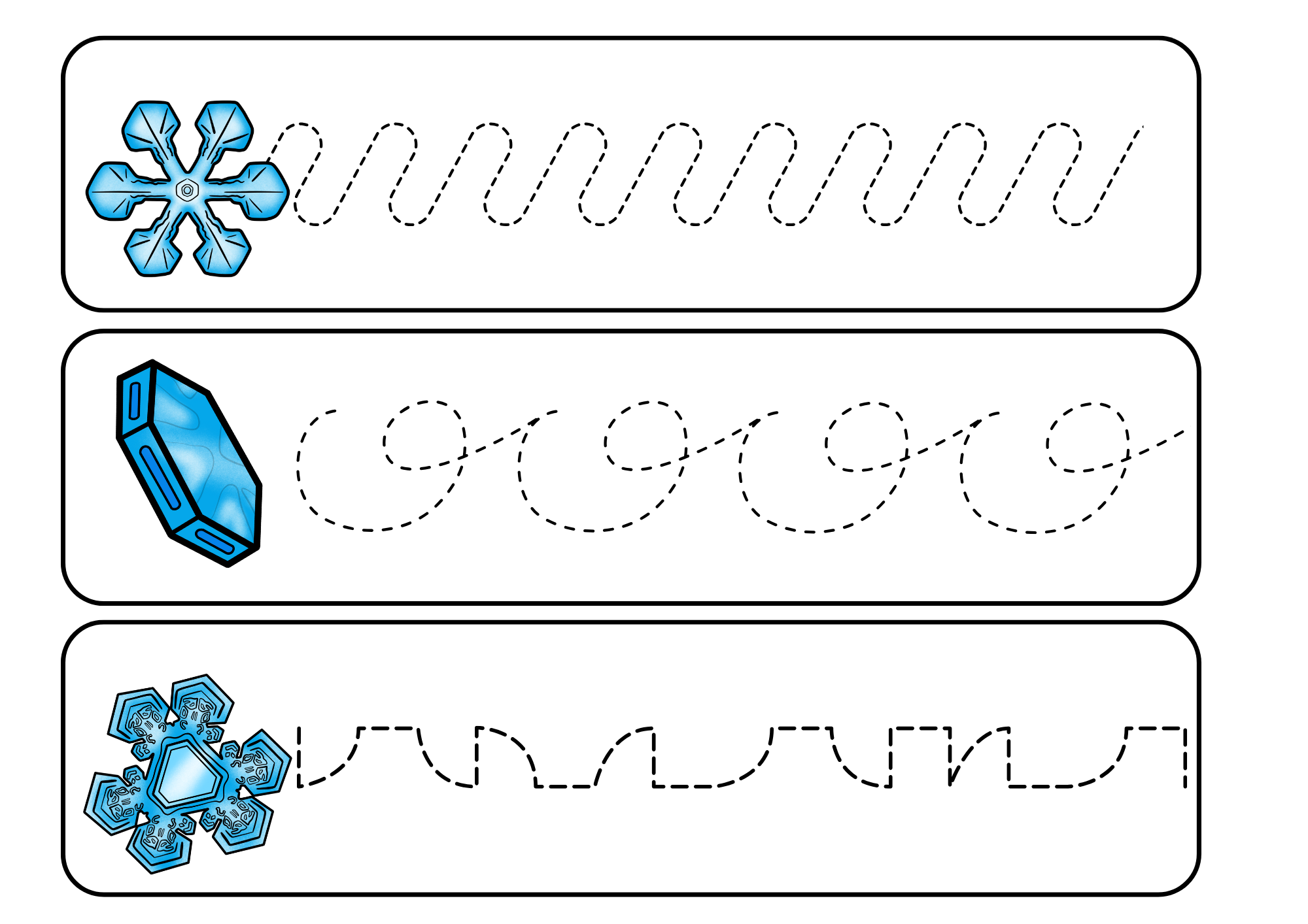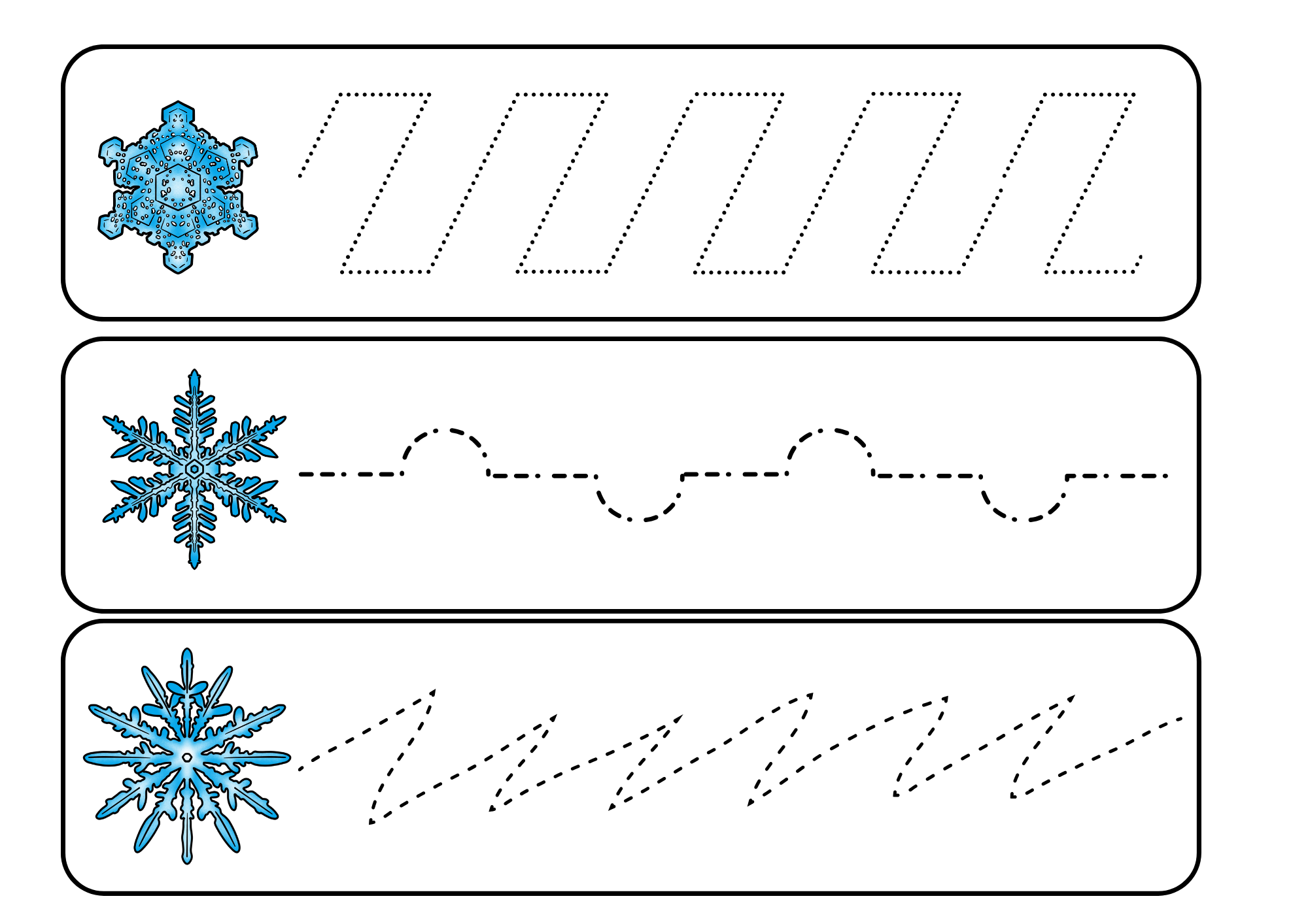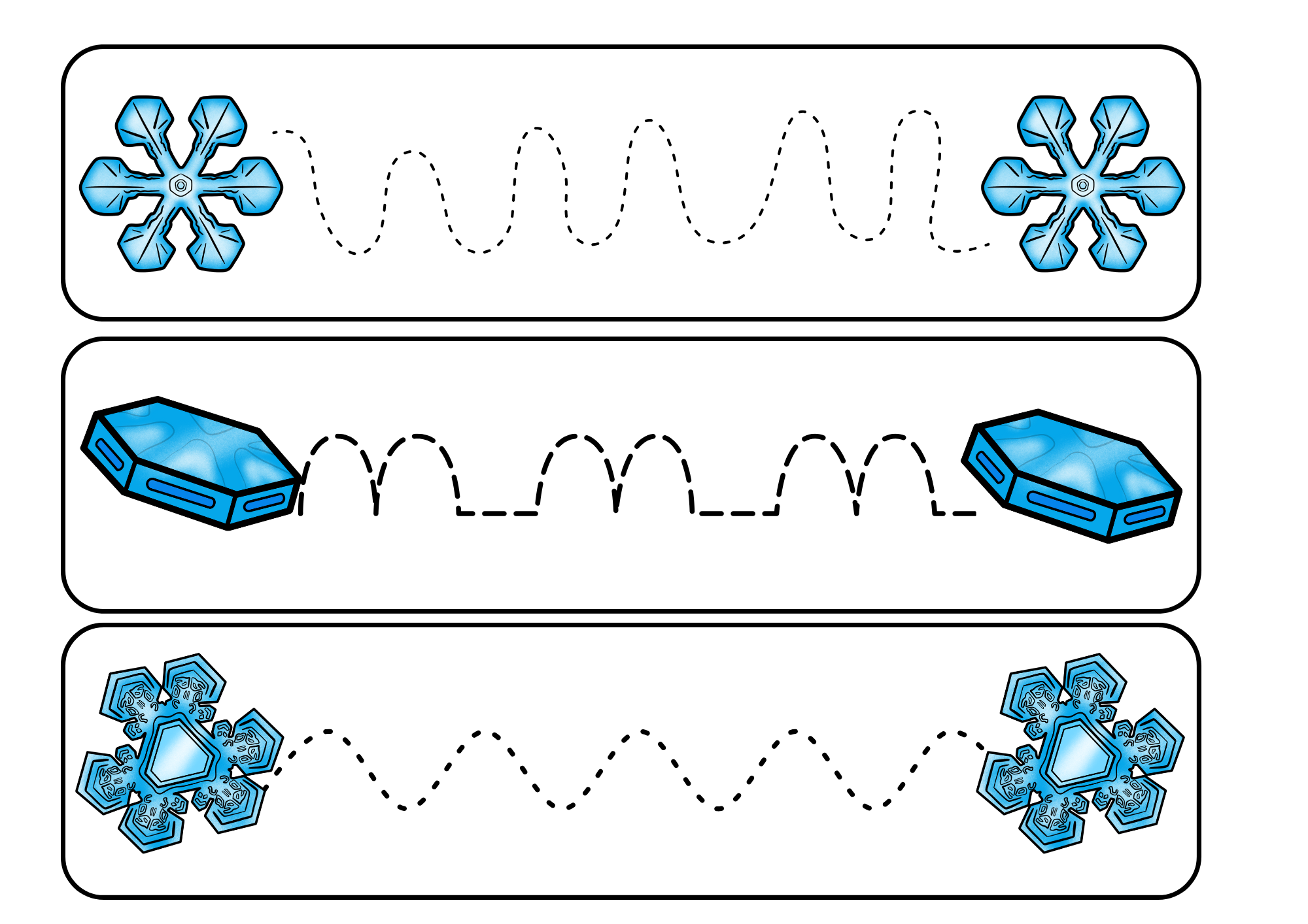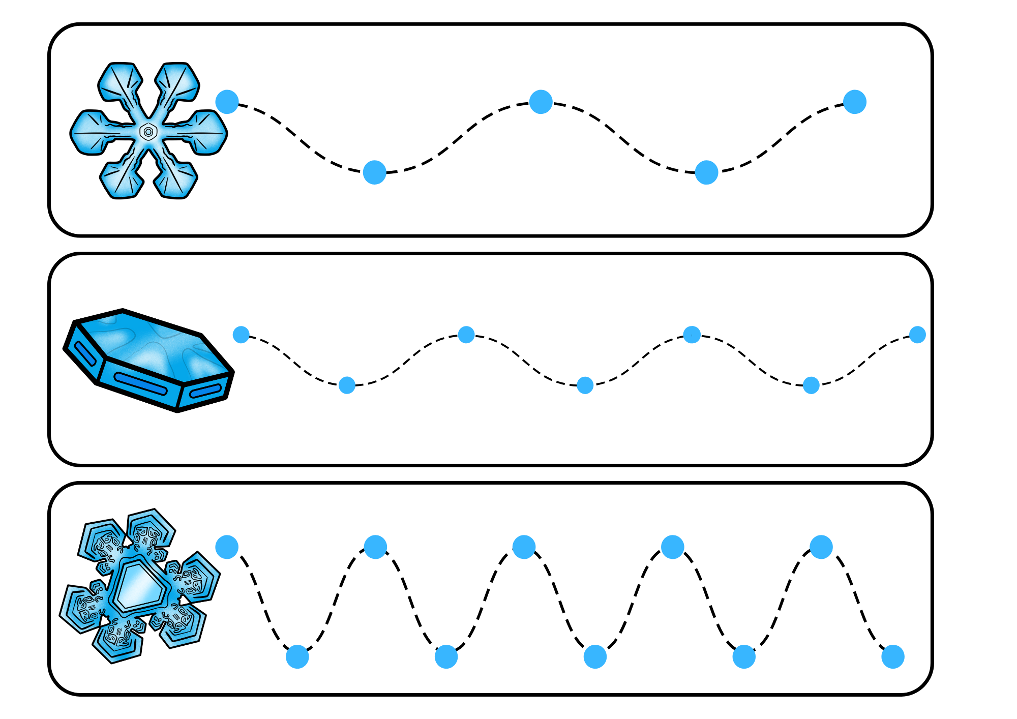 Děti obtahují cesty od vločky ke vločce, procvičují správný směr psaní a uvolnění ruky.