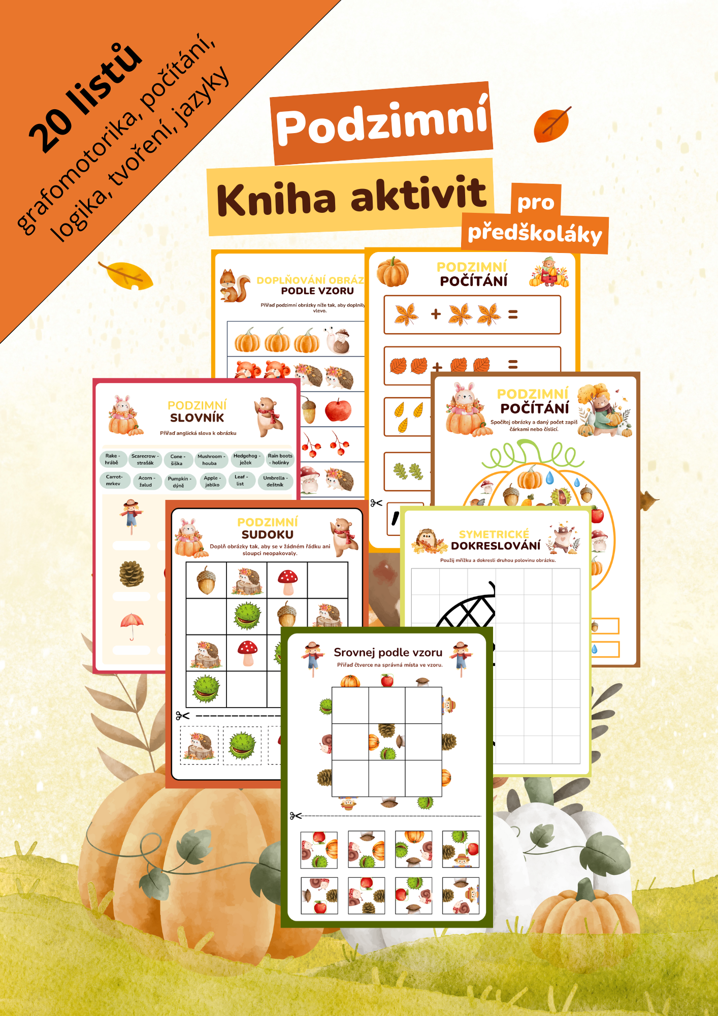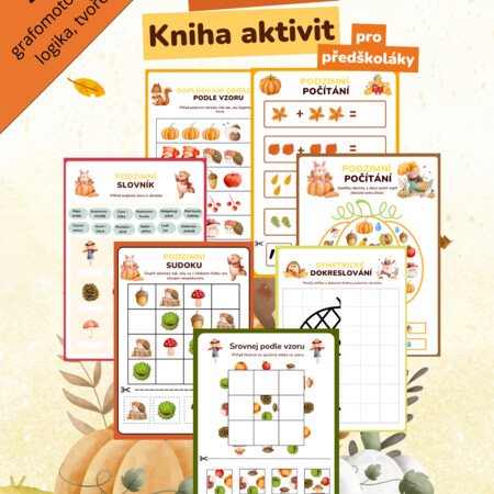 Sada obsahuje 20 podzimně laděných pracovních listů, které dětem pomáhají rozvíjet dovednosti potřebné při vstupu do školy. Úkoly jsou navržené tak, aby učení bylo hravé a motivující – děti nejen vyplňují listy, ale také plní jednoduché praktické úkoly.